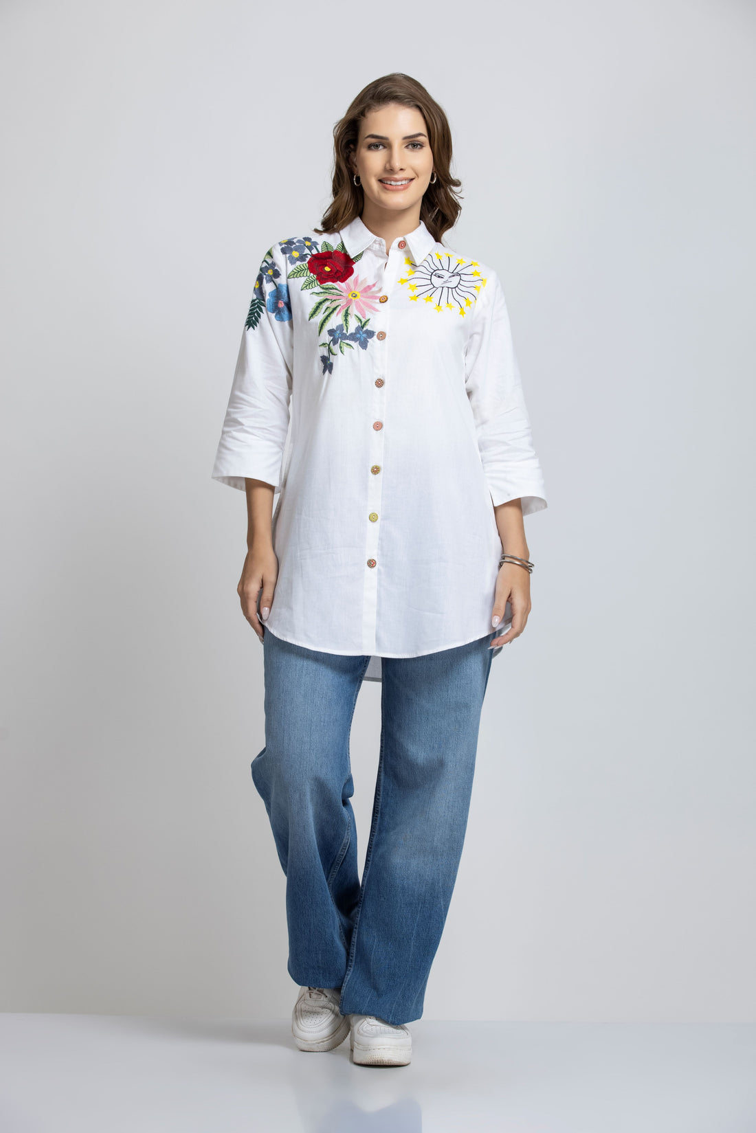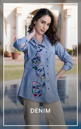 Chambray Cotton Front & Back Embroidered Women Shirt