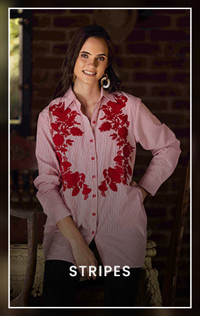 STRIPE FLORAL FRONT AND SLEEVES EMBROIDERED COTTON SHIRT ( Diwali )