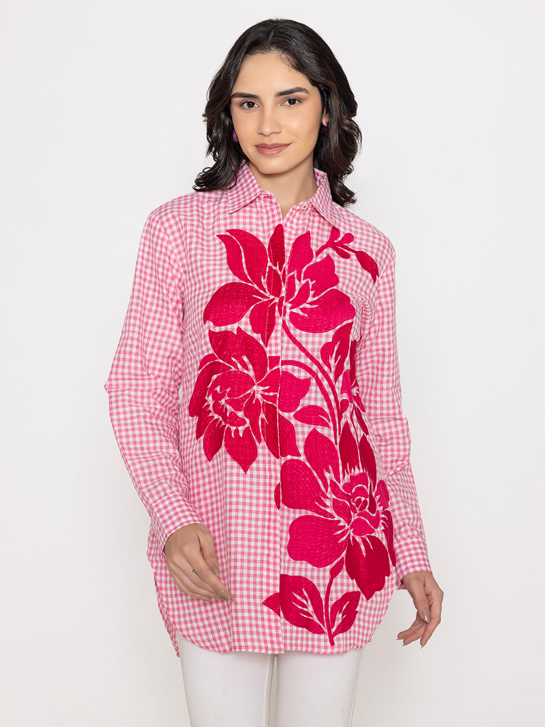 SOLID COLOR FLORAL FRONT AND BACK EMBROIDERED COTTON SHIRT
