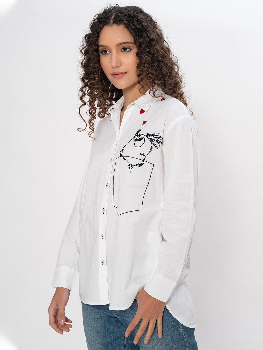 SOLID COLOR FRONT AND BACK EMBROIDERED TWEETY COTTON SHIRT