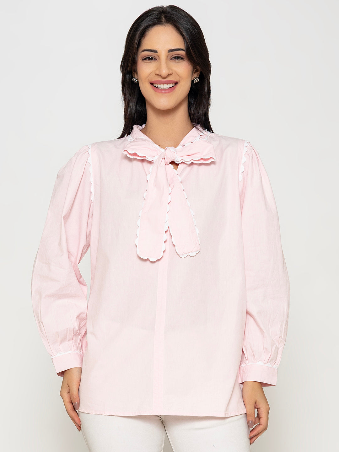 SOLID COLOR FRONT EMBROIDERED SEQUENCE COTTON SHIRT