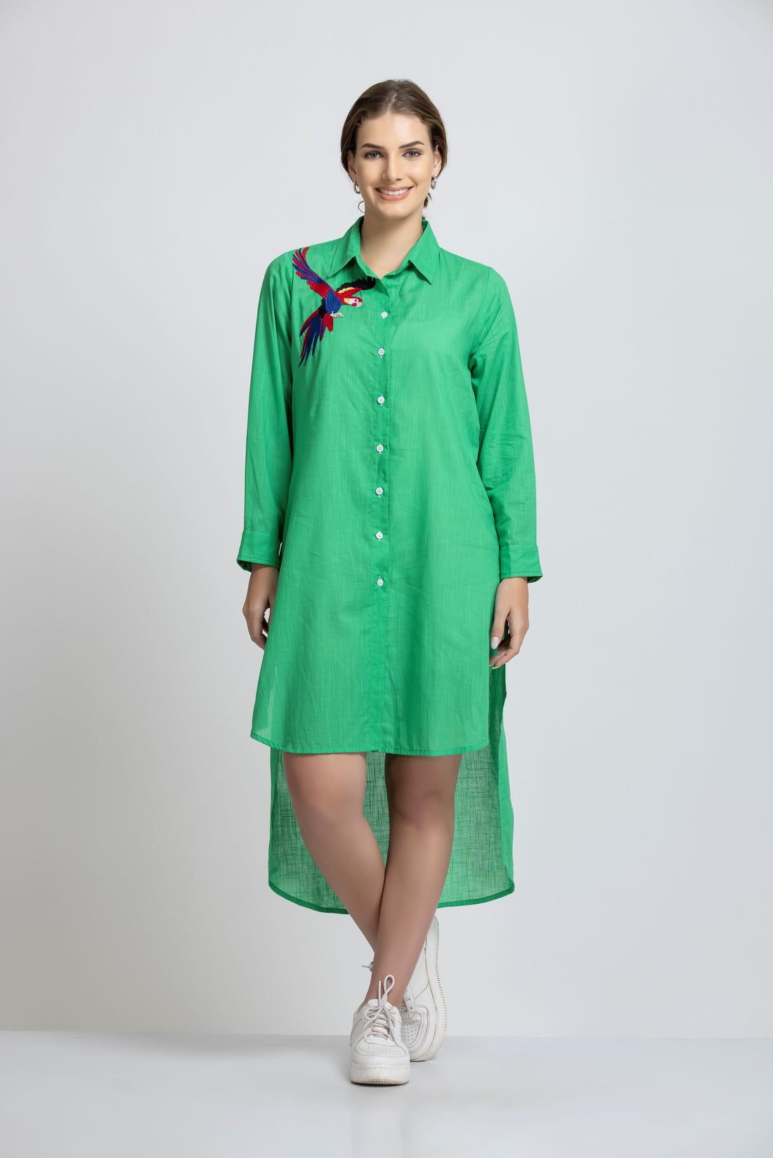 LIME GREEN COLOR FRONT SEQUENCE EMBROIDERED COTTON SHIRT
