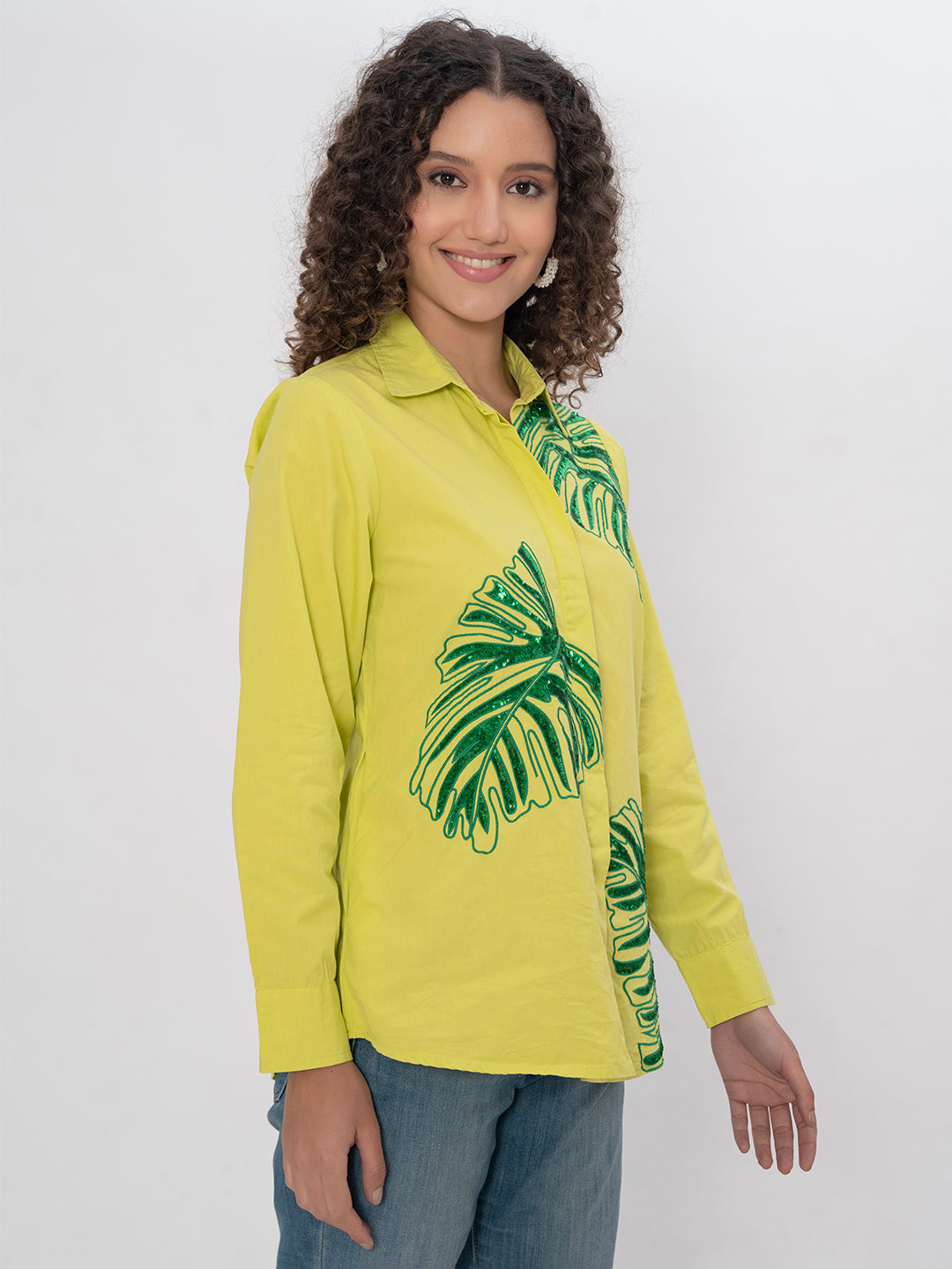 VIBRANT YELLOW FRONT EMBROIDERED SEQUENCE COTTON SHIRT ( Diwali )