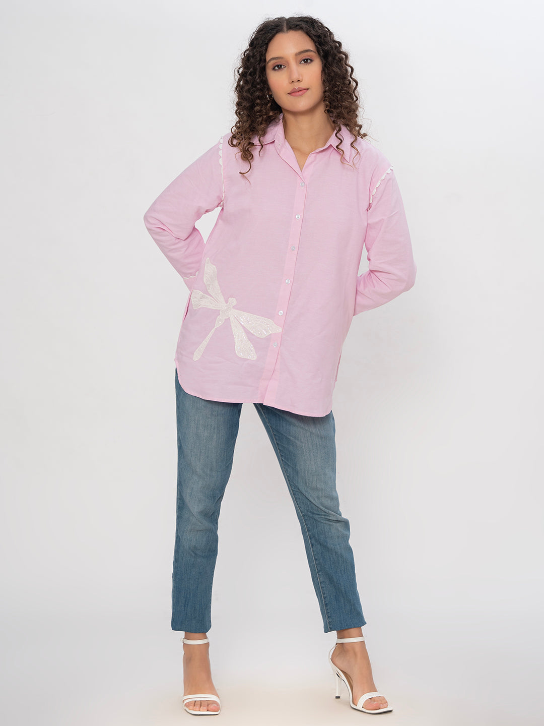 PINK COLOR FRONT AND BACK EMBROIDERED SEQUENCE COTTON SHIRT ( Diwali )