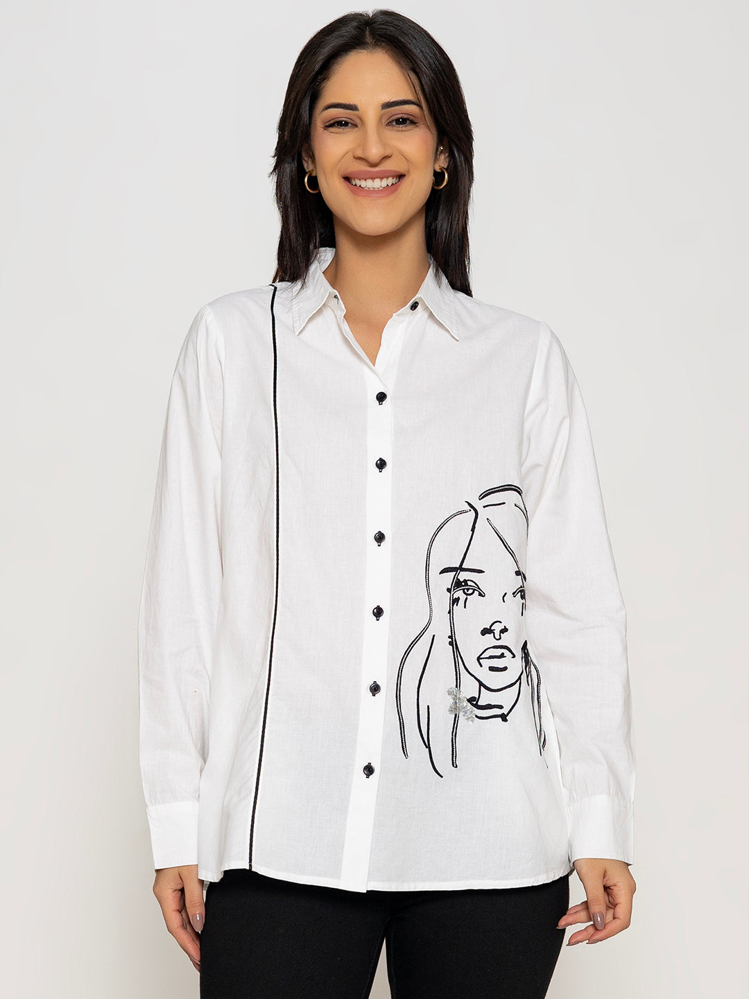White Cotton Shirt with Sequin Accents Step into effortless elegance with this white cotton shirt,...