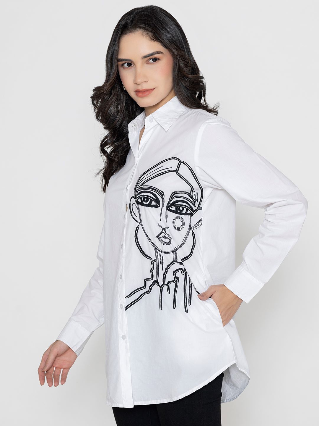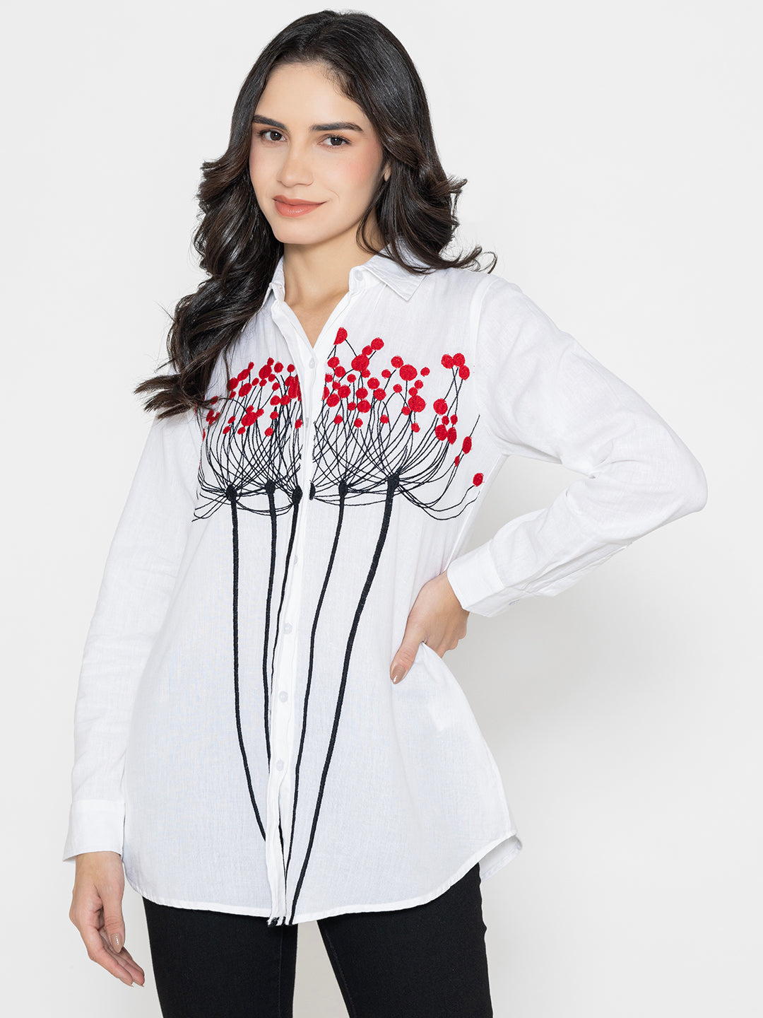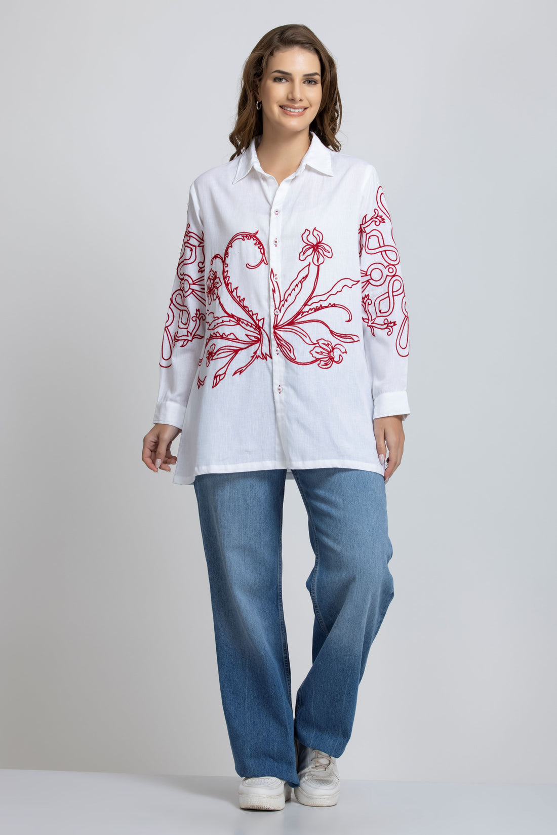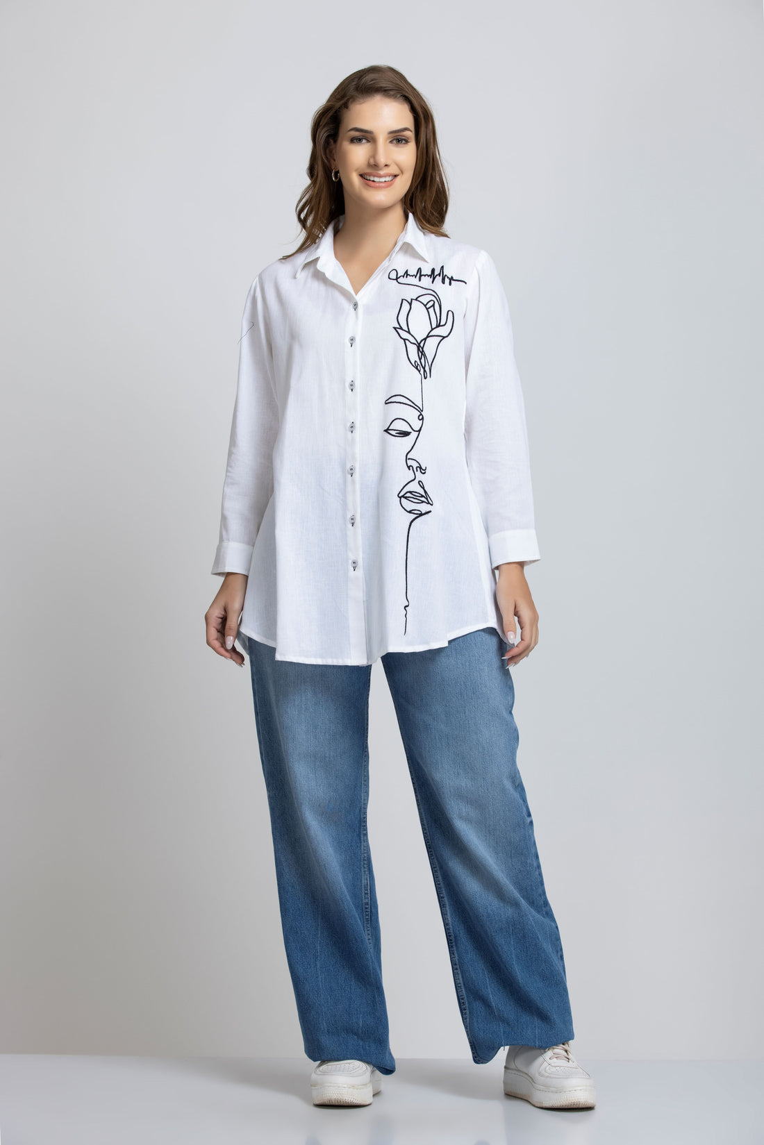 SOLID COLOR FRONT & SLEEVES EMBROIDERED BUTTON-UP SHIRT.