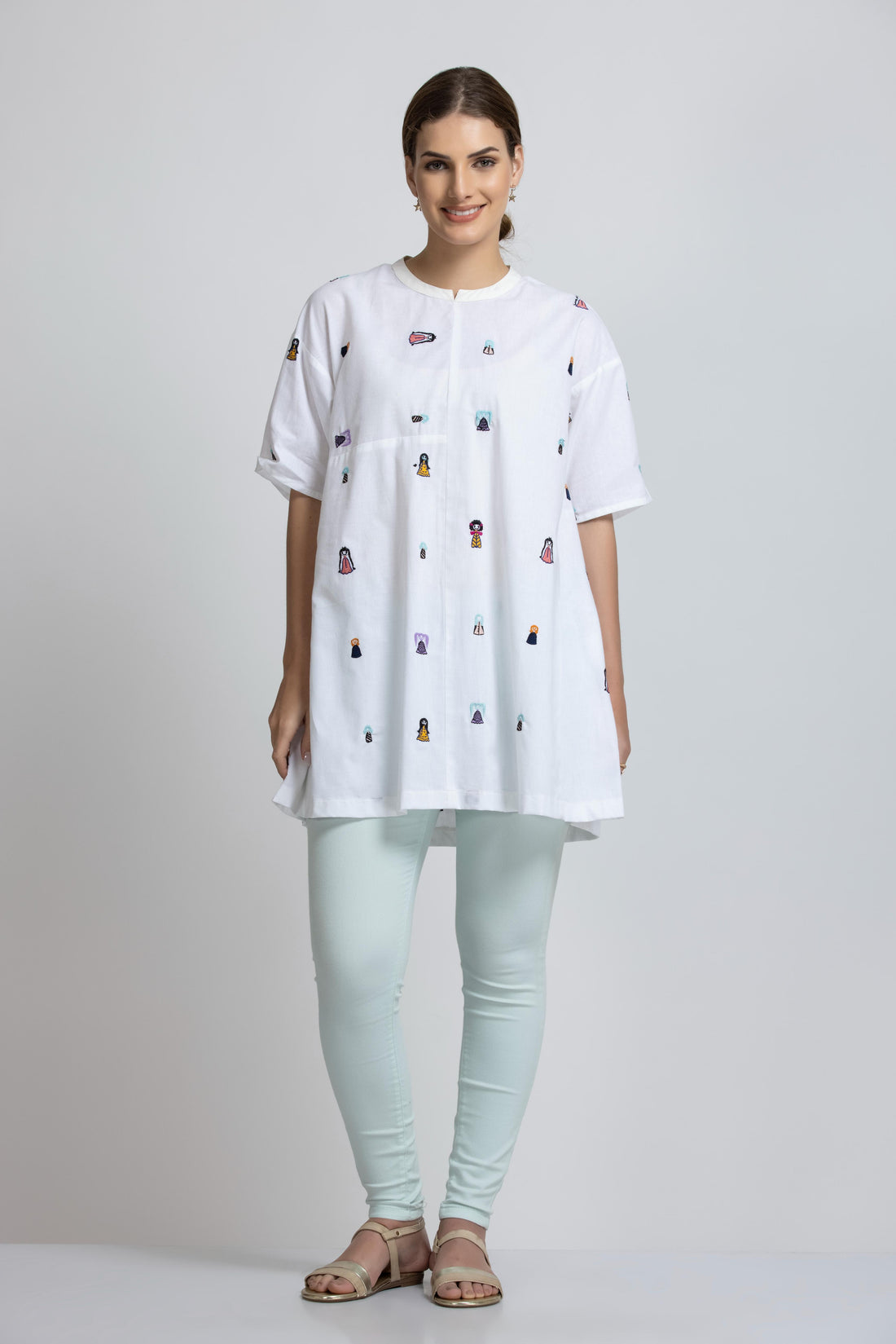 SOFTMINT SOLID COLOR FRONT AND BACK EMBROIDERED COTTON SHIRT WITH LACE DETAILING