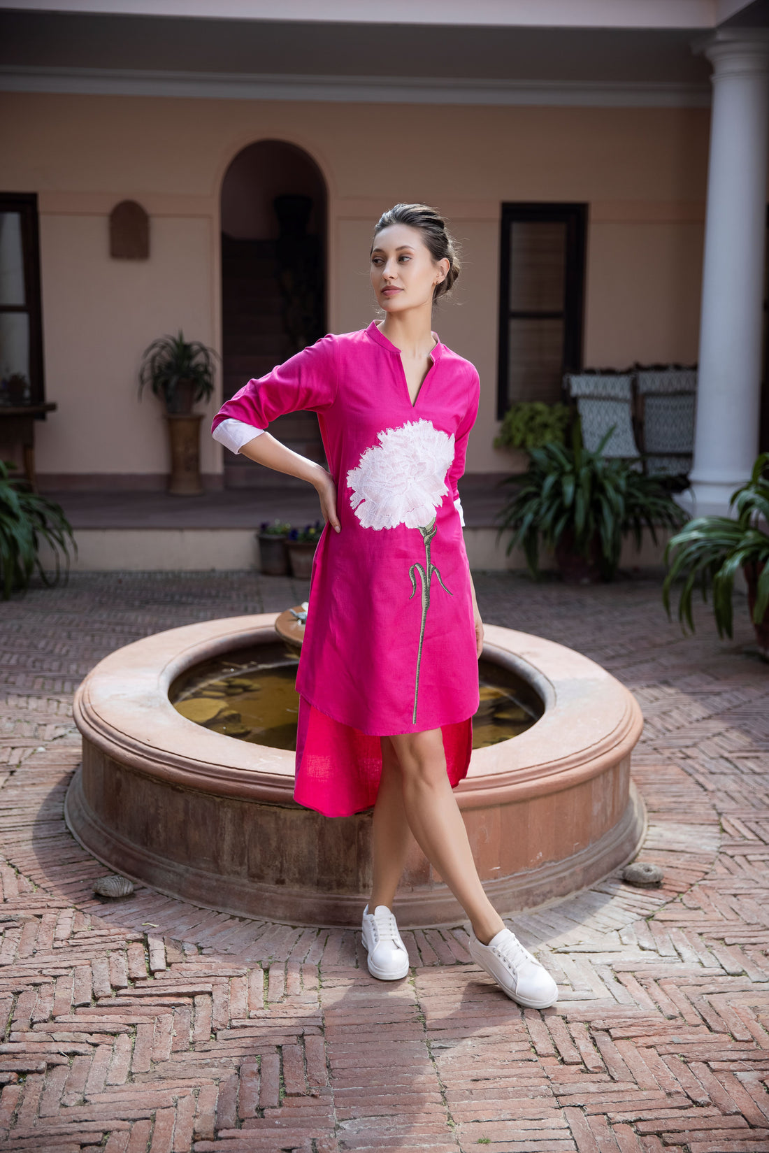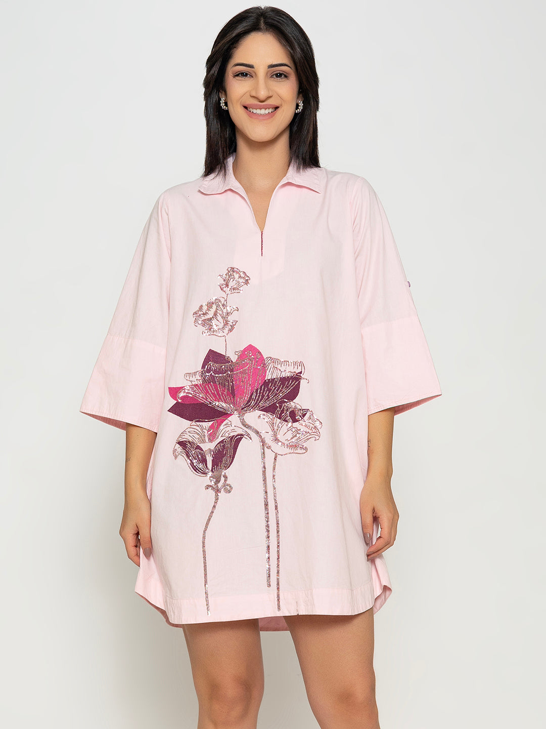 Step into effortless style with our rosy pink cotton dress, delicately adorned with front sequin...
