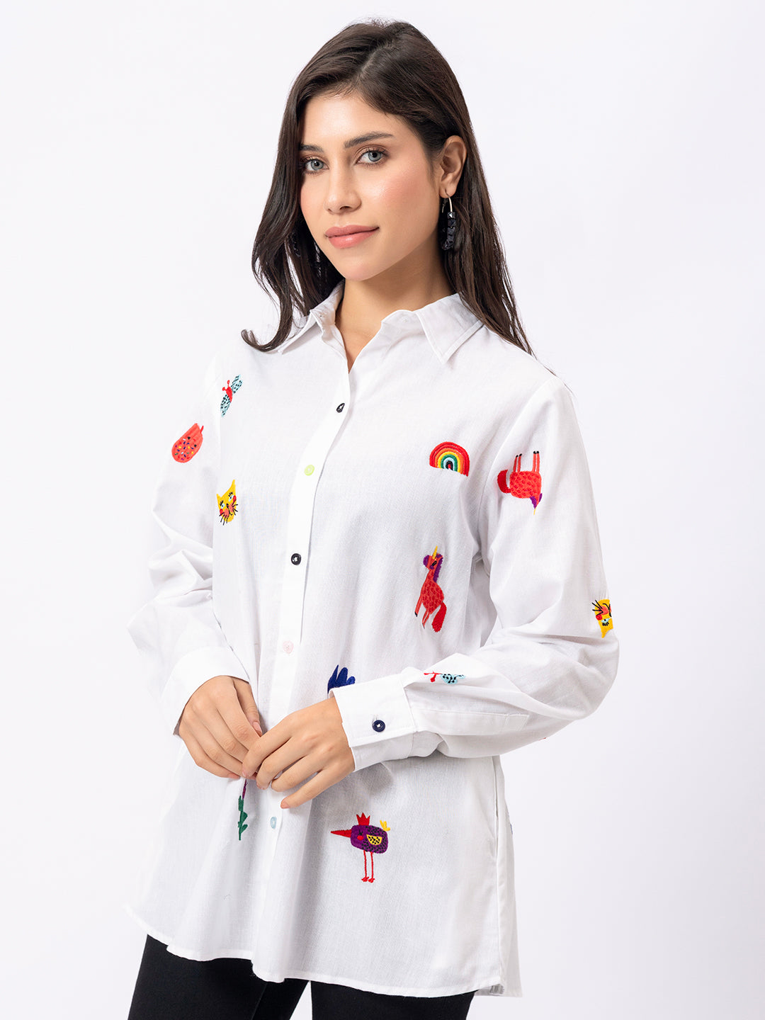 ALL OVER EMBROIDERED CANDY COTTON SHIRT ( Diwali )