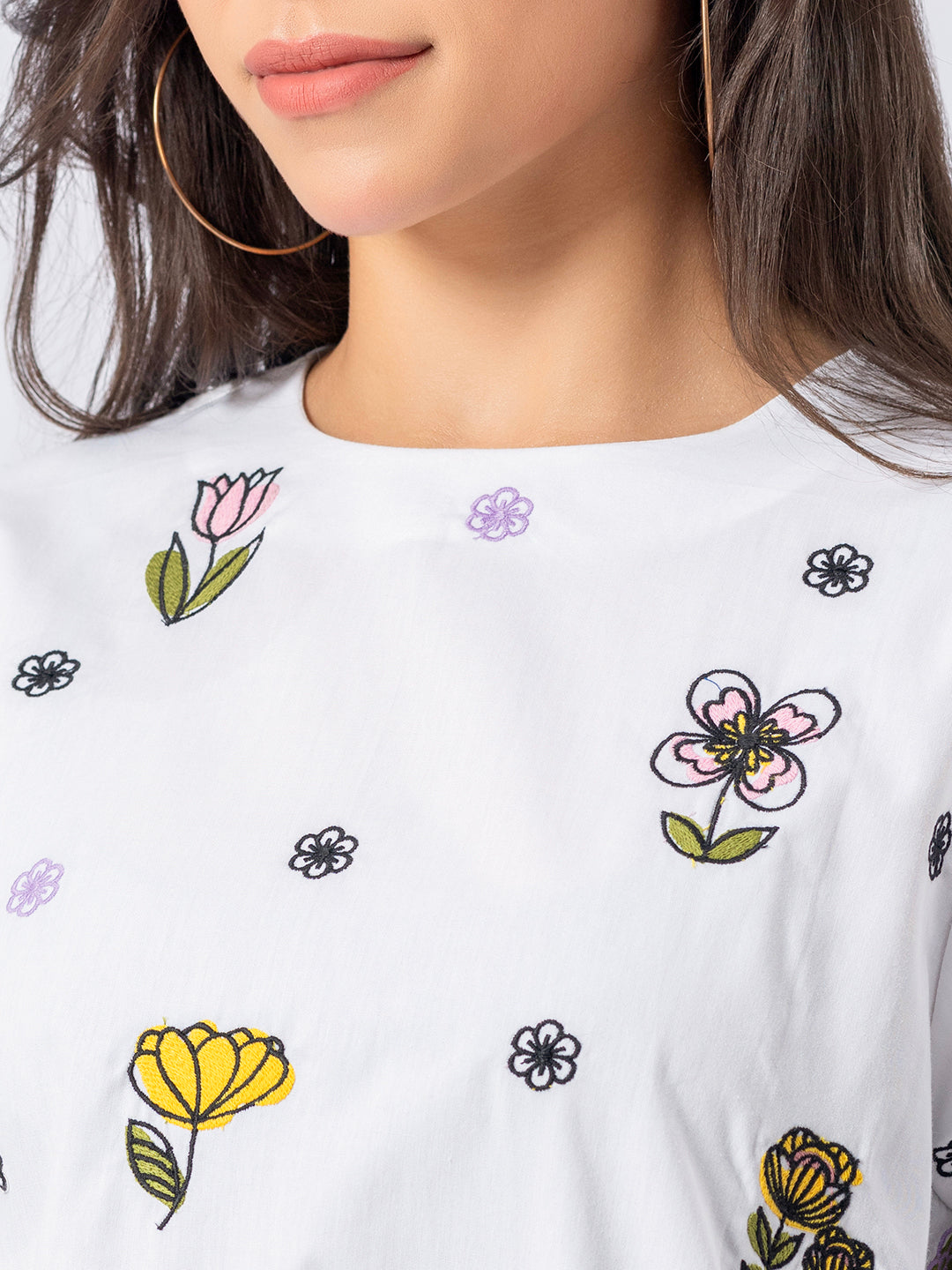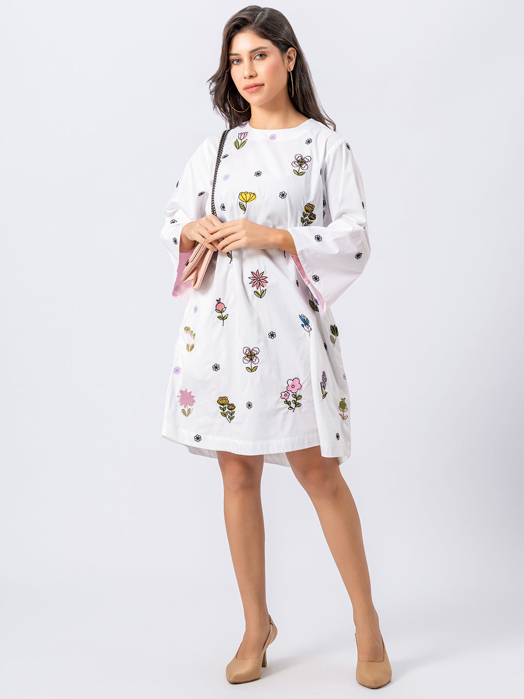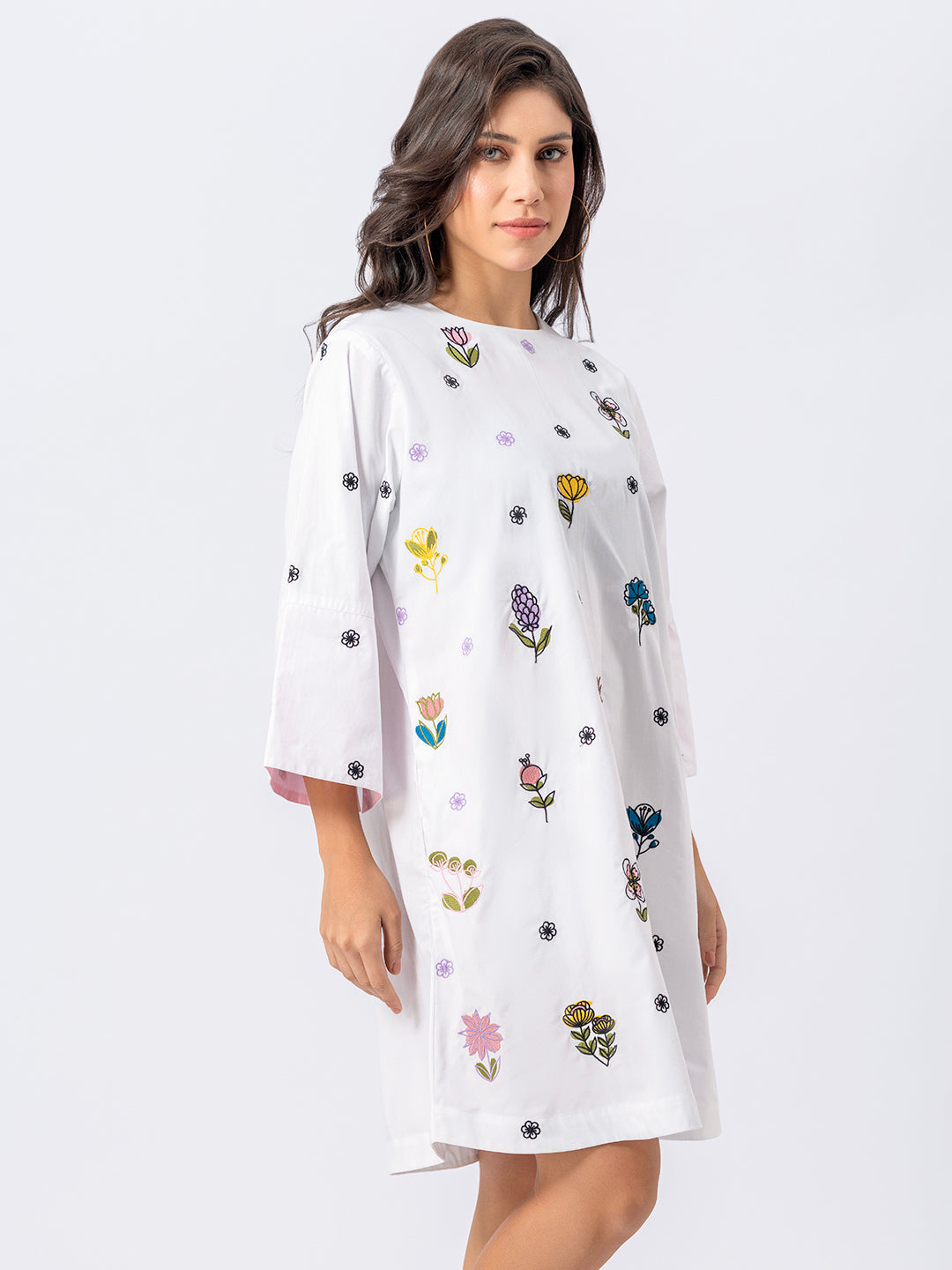 ALL OVER EMBROIDERED FLORAL COTTON SHIRT WITH BELL SLEEVES ( Diwali )