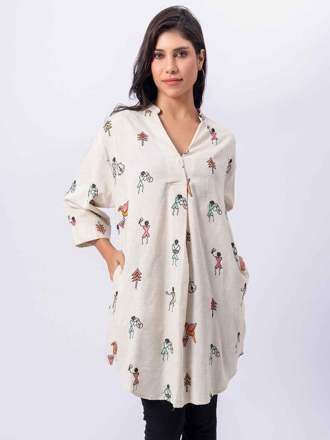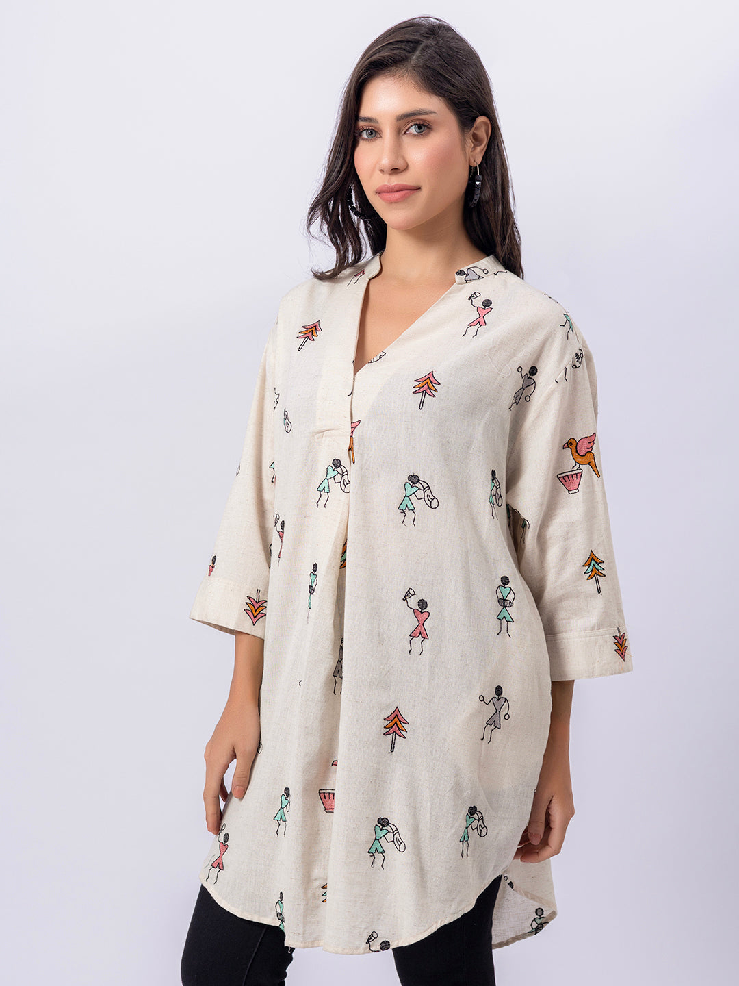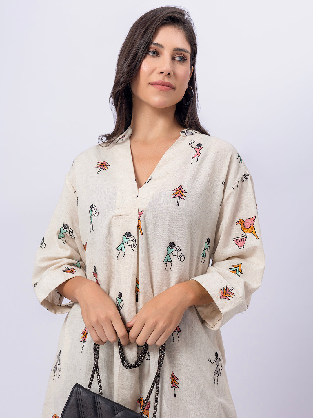 ALL OVER EMBROIDERED TRIBAL FIGURE COTTON SHIRT ( Diwali )