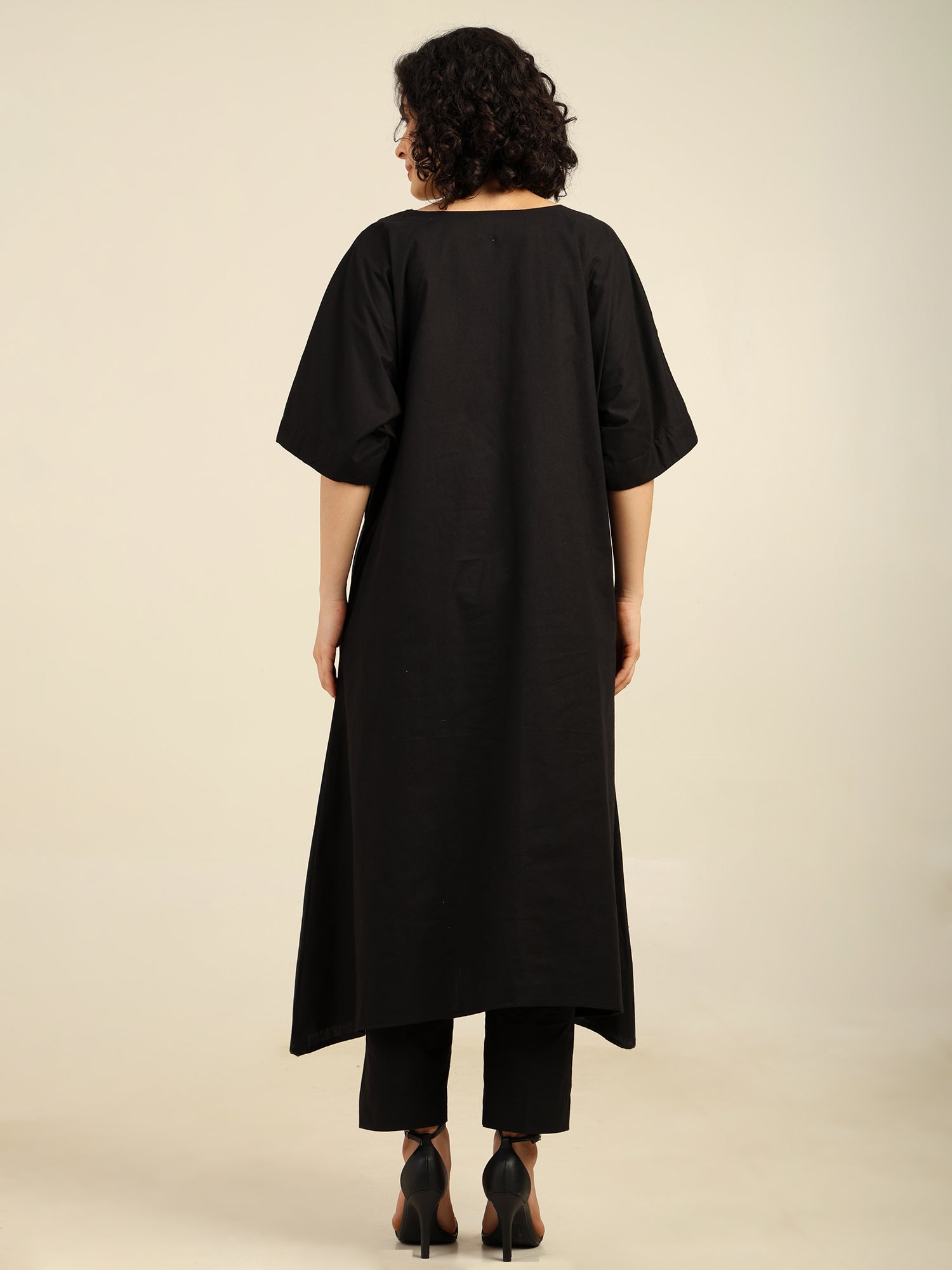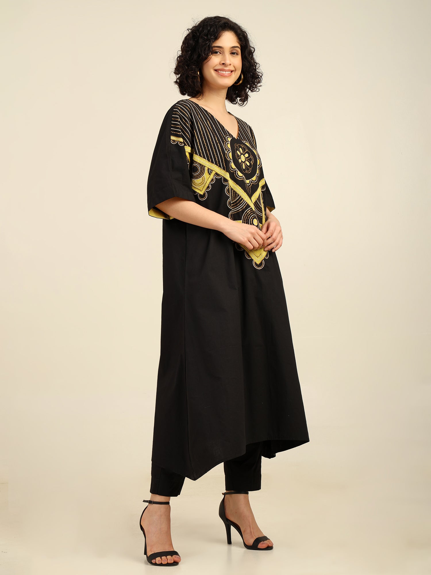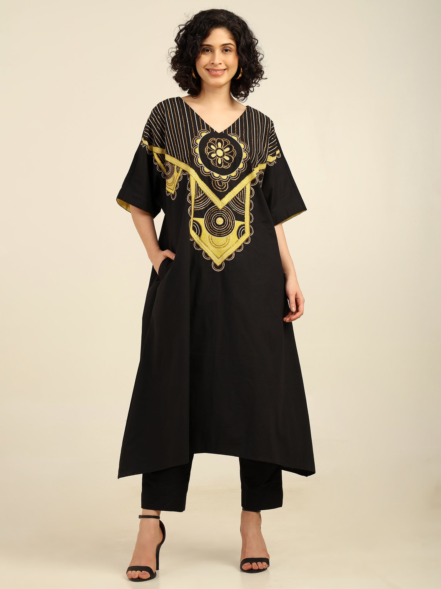 Black Cotton Heavy Neckline Embroidered Coord Set