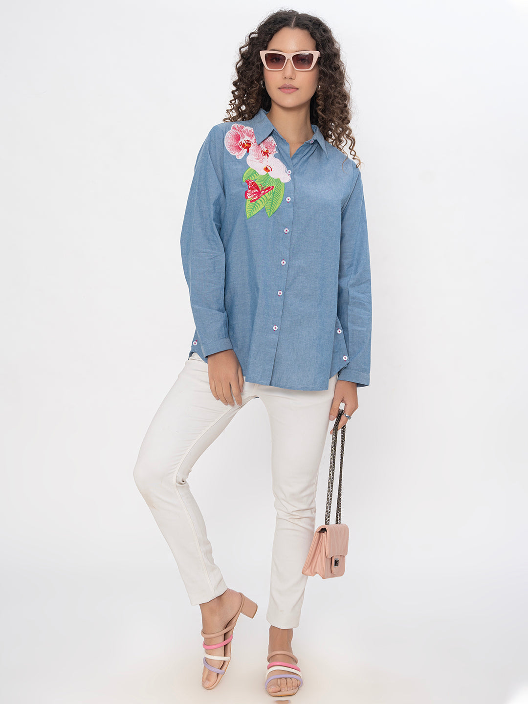 DENIM FRONT AND BACK EMBROIDERED SHIRT ( Diwali )