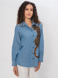 DENIM FRONT EMBROIDERED SEQUENCE SHIRT