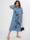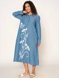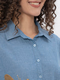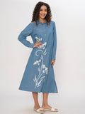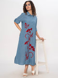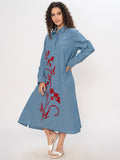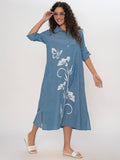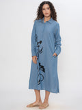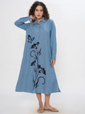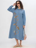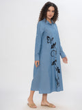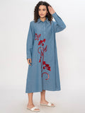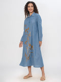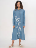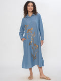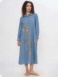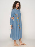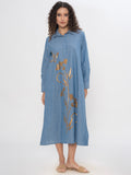 DENIM FRONT EMBROIDERED SEQUENCE SHIRT DRESS WITH SIDE SLITS ( Diwali )