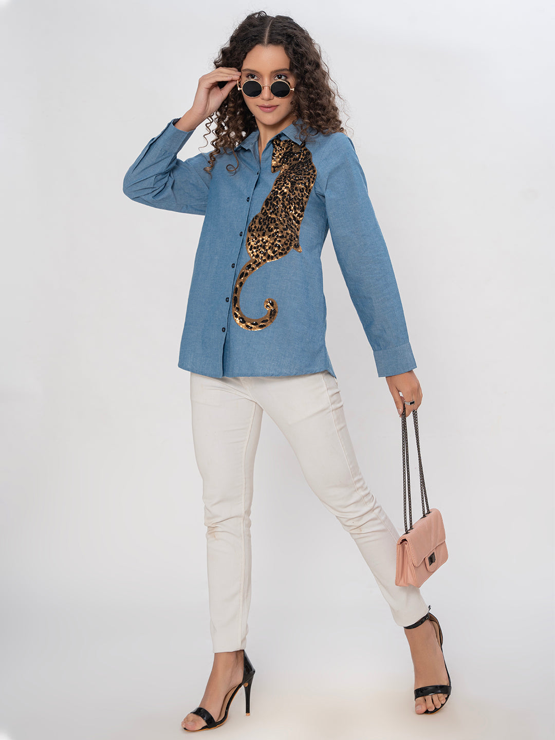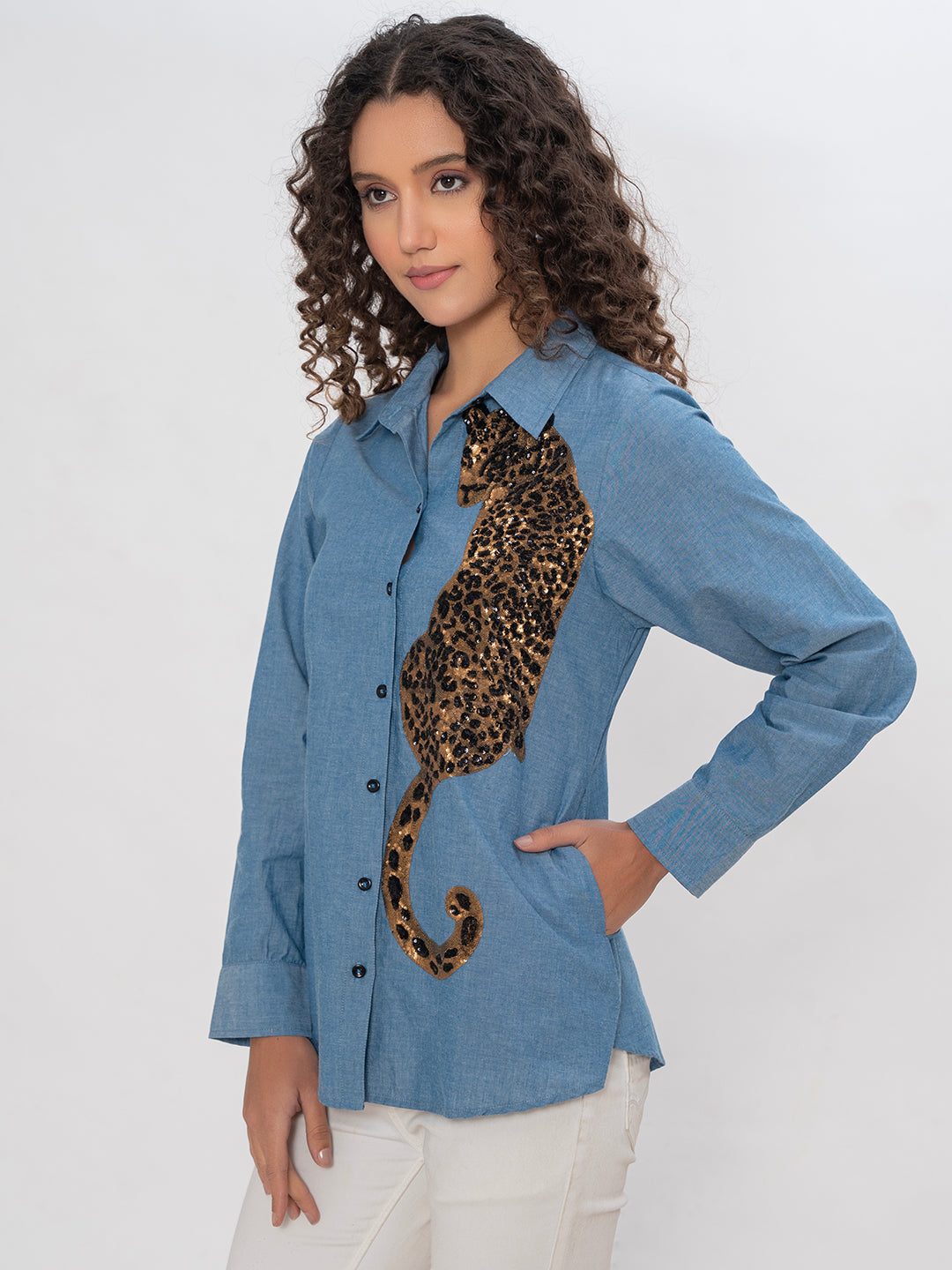 DENIM FRONT EMBROIDERED SEQUENCE SHIRT ( Diwali )