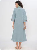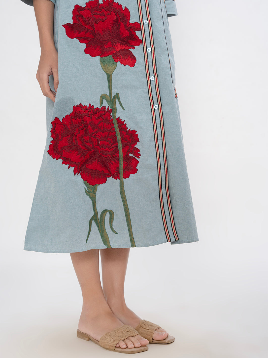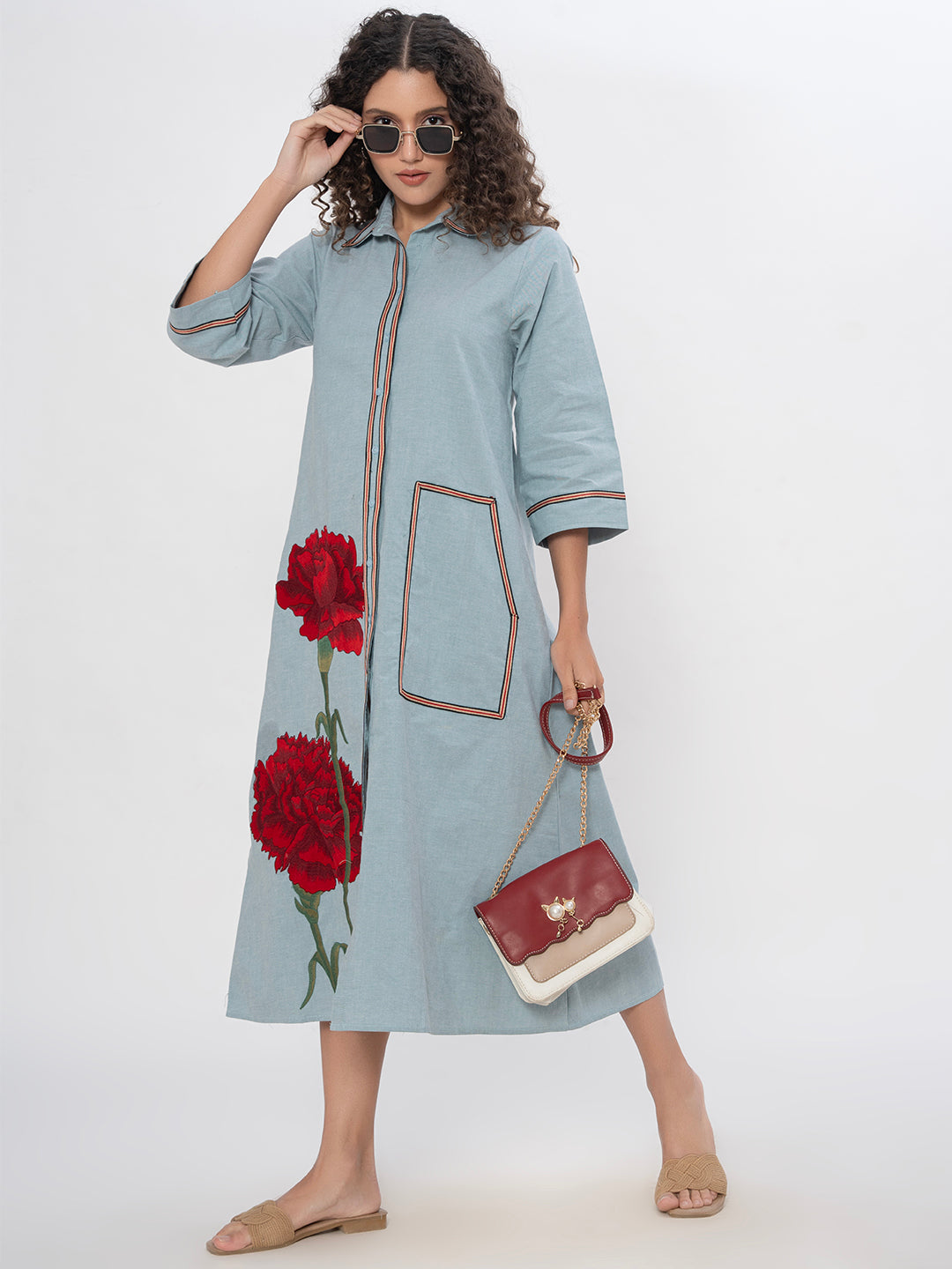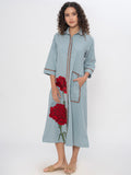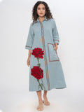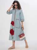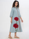 DENIM FRONT FLORAL EMBROIDERED SHIRT DRESS WITH PATCH POCKET ( Diwali )