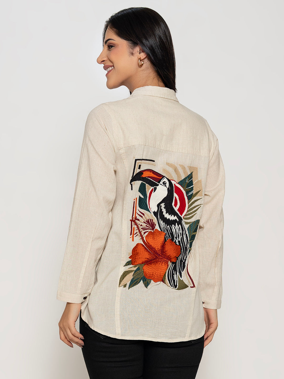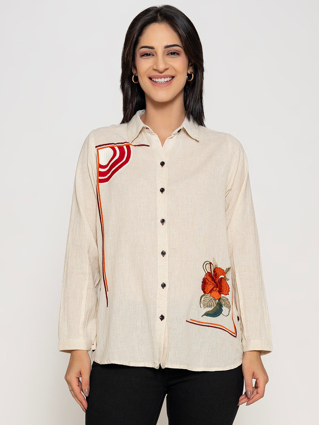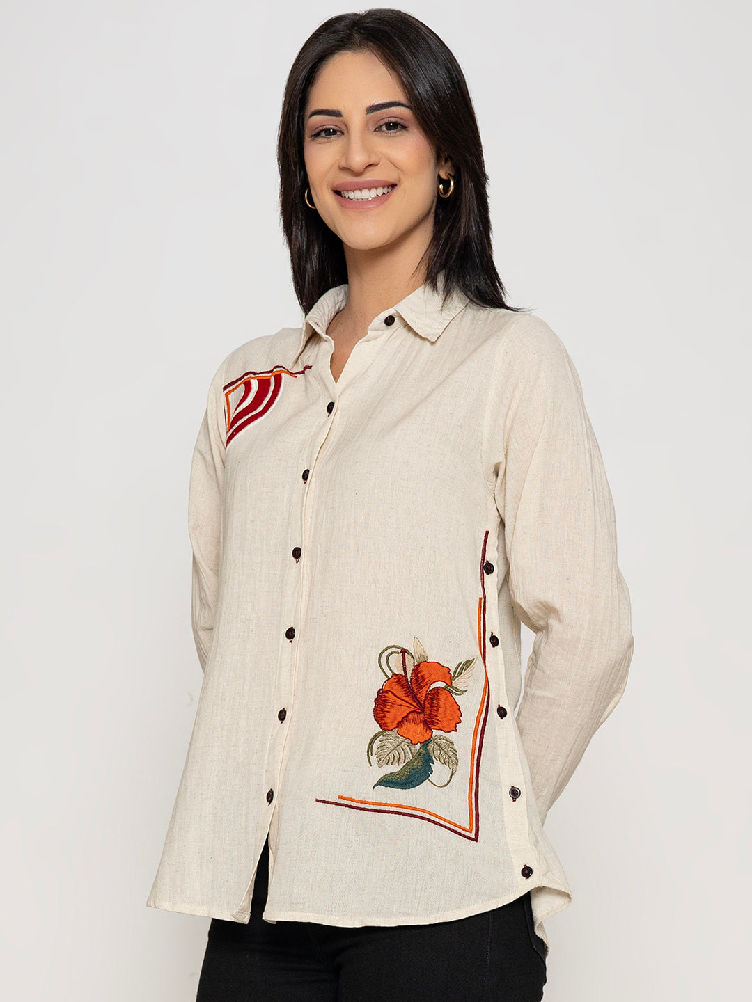 A classic silhouette meets thoughtful craftsmanship—this cotton shirt dress features delicate embroidery on both the front and back, paired with stylish side button detailing. Designed for comfort and sophistication, it’s your go-to for both weekday charm and weekend flair.