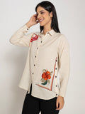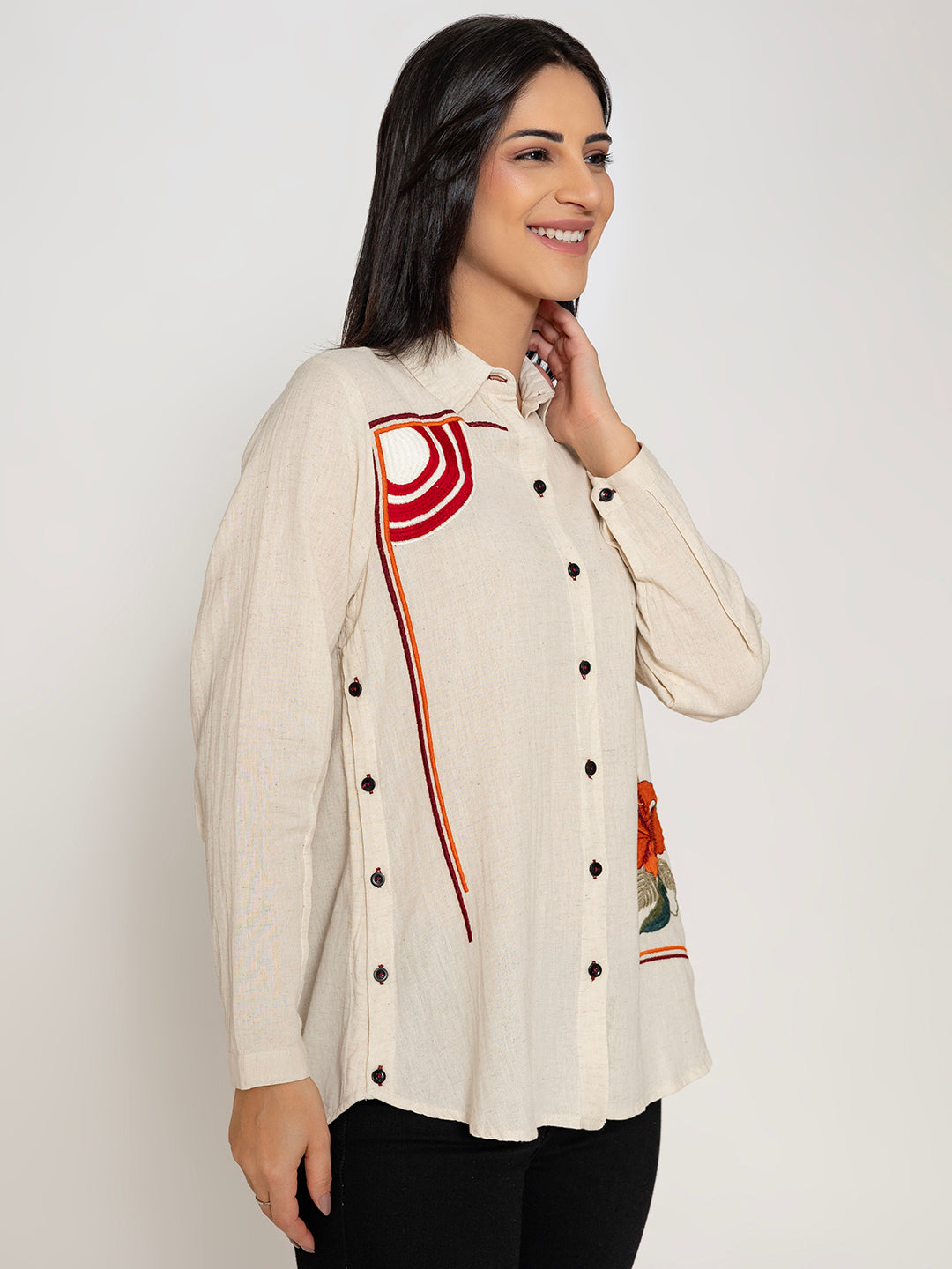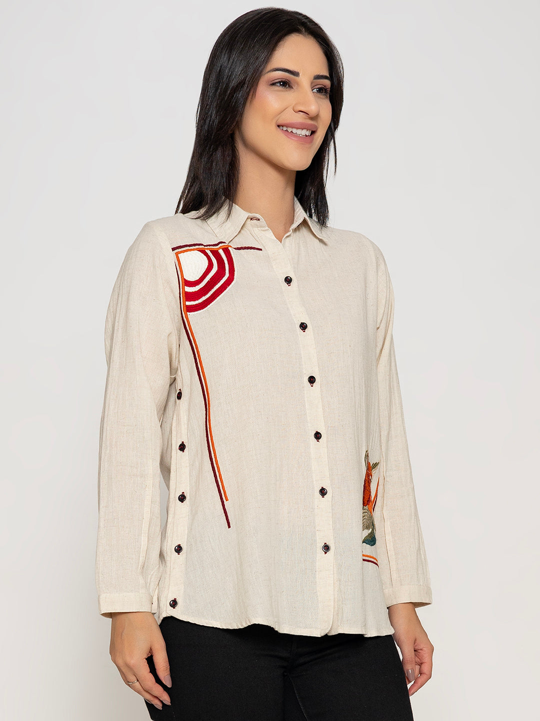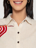 FRONT AND BACK EMBROIDERED COTTON SHIRT DRESS WITH SIDE BUTTON DETAILING ( Diwali )