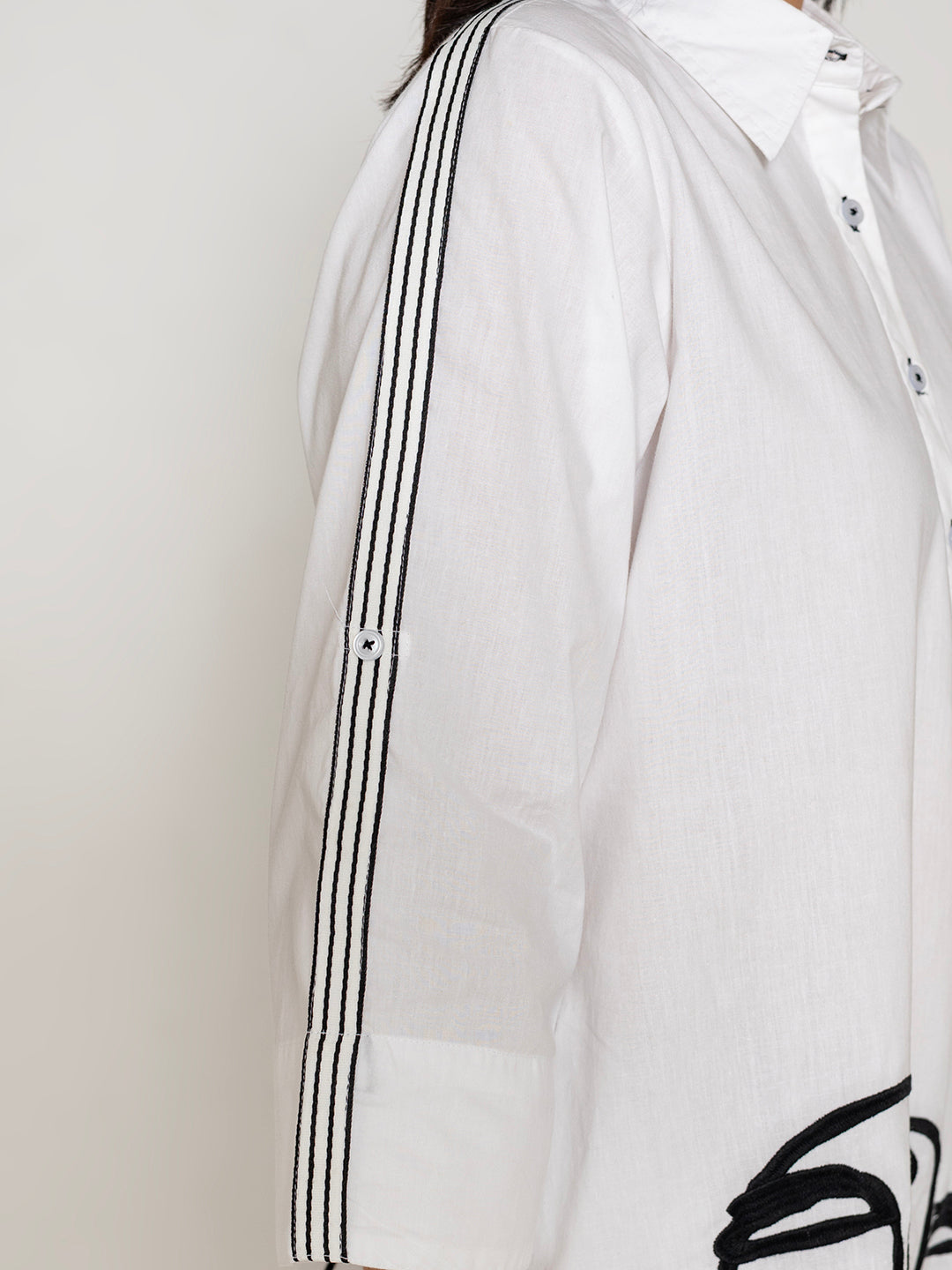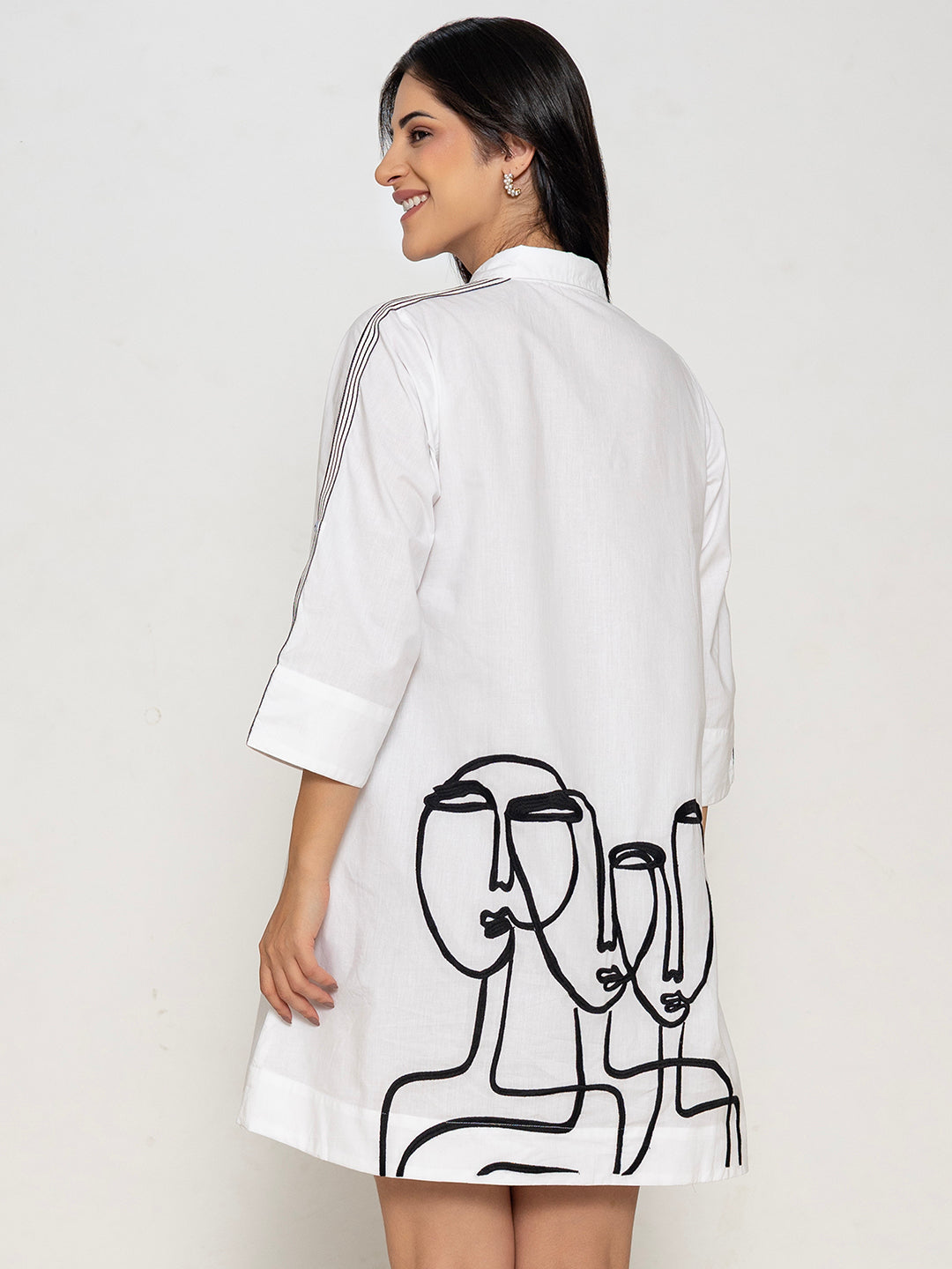 FRONT AND BACK EMBROIDERED SHIRT DRESS WITH LACE DETAILING AT SLEEVES