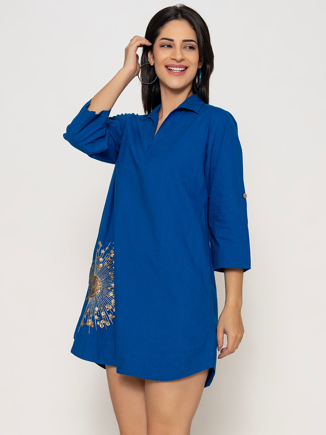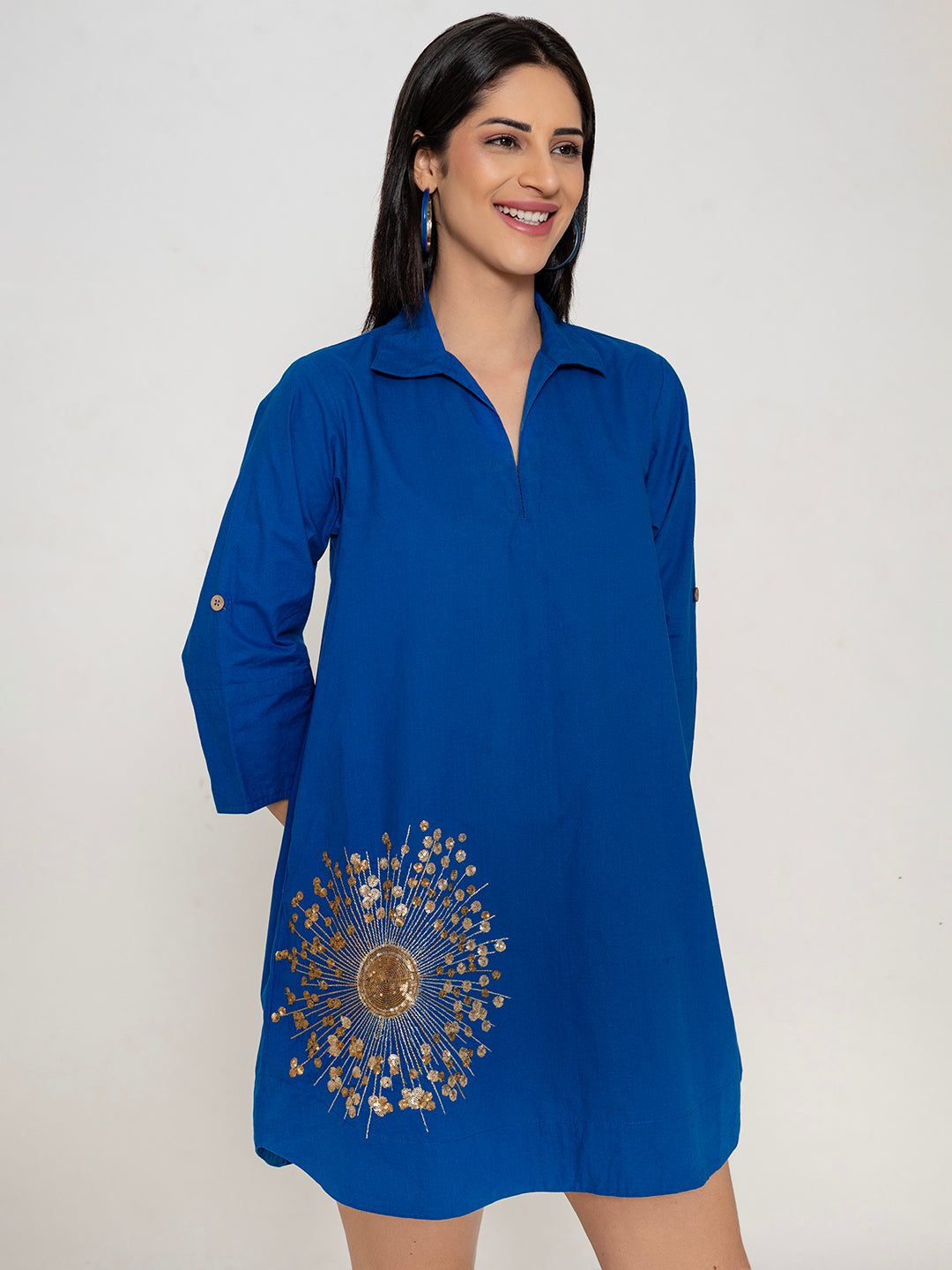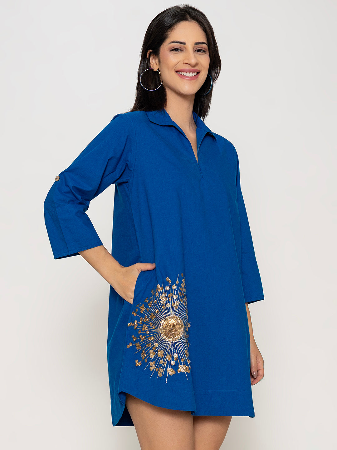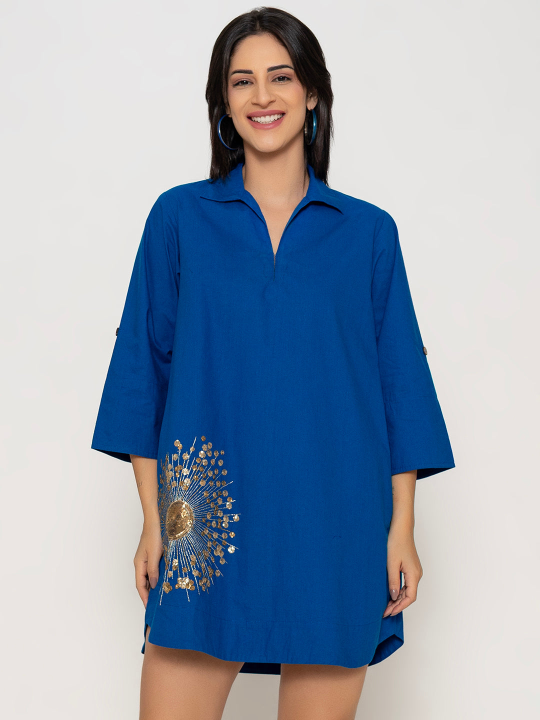 FRONT COPPER GOLD SEQUENCE EMBROIDERED SHIRT DRESS ( Diwali )