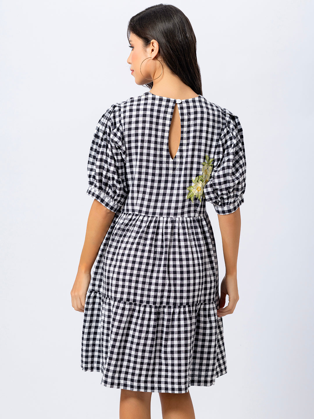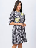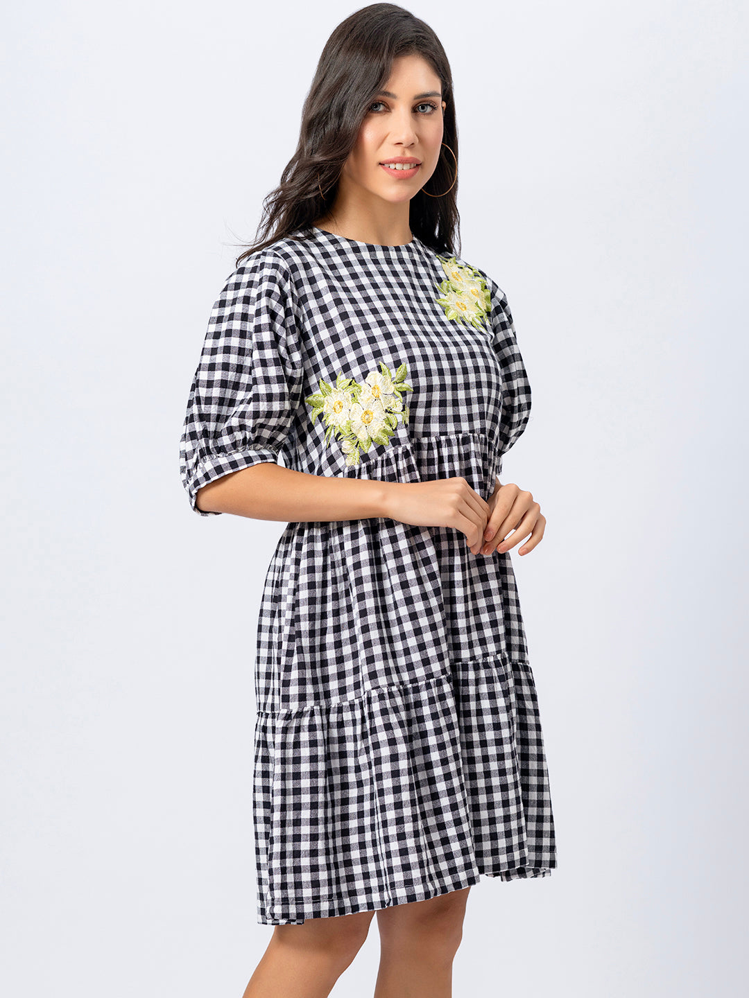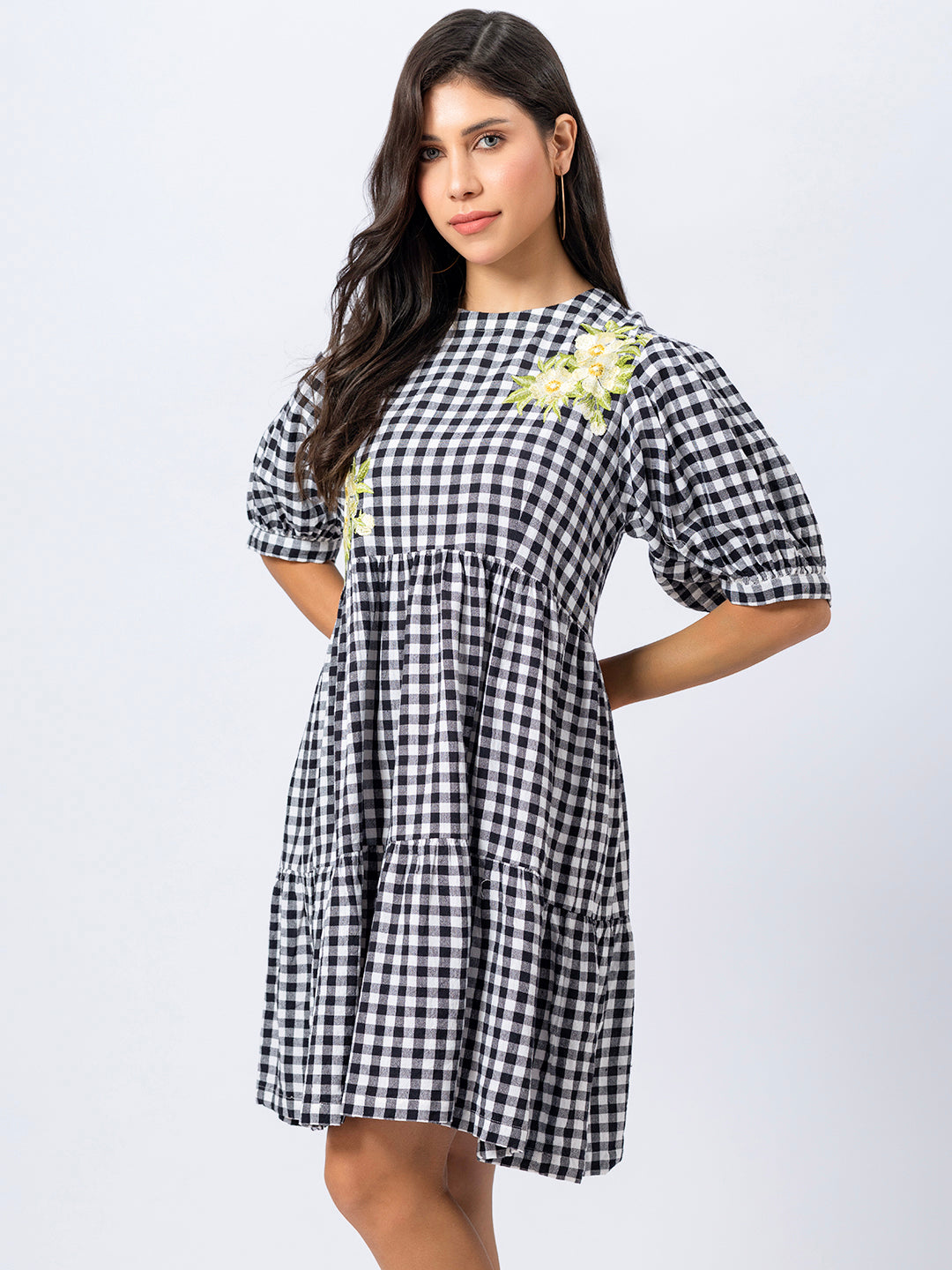 FRONT EMBROIDERED CHECK COTTON SHIRT DRESS ( Diwali )