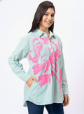 GREEN STRIPE FRONT EMBROIDERED COTTON SHIRT