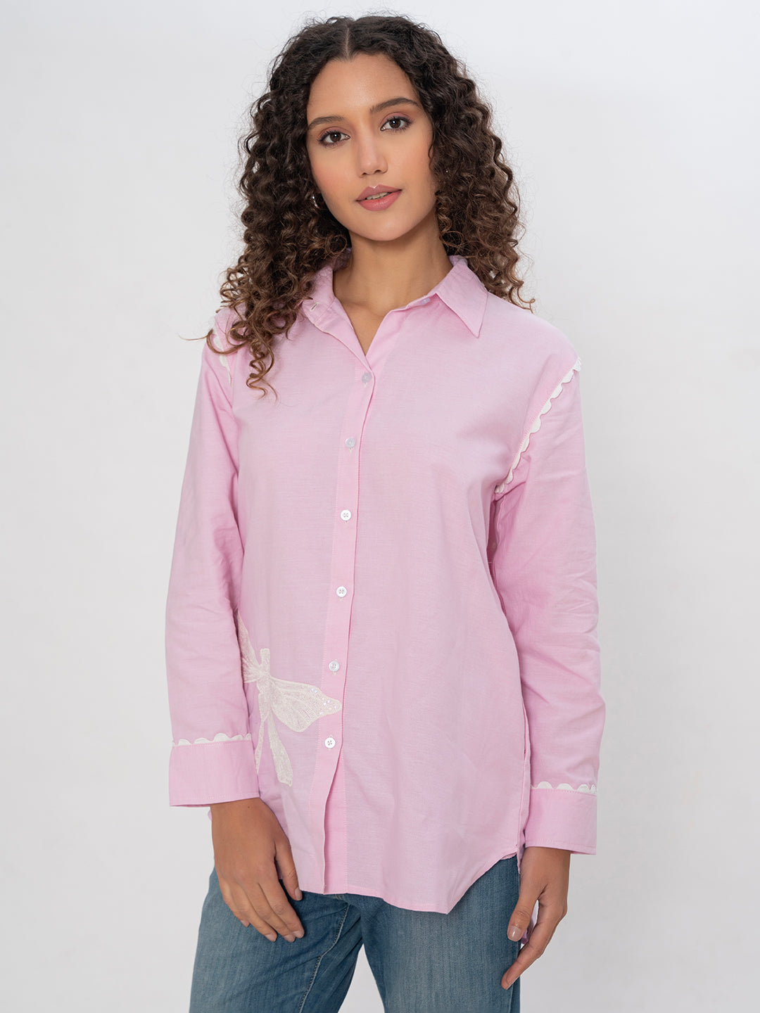 PINK COLOR FRONT AND BACK EMBROIDERED SEQUENCE COTTON SHIRT