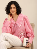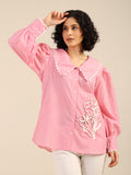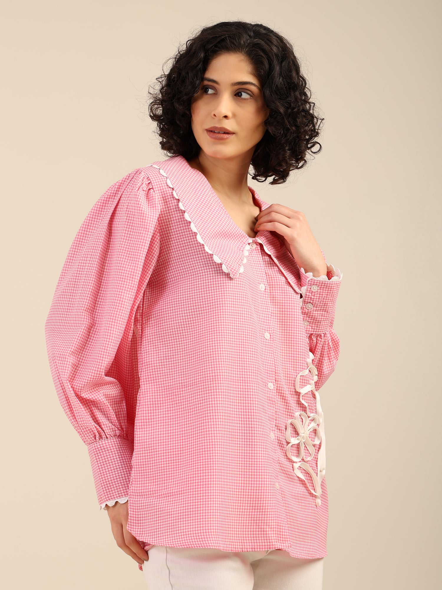Red & White Gingham Check Front Ribbon Floral Detailing Vintage Cotton Shirt ( Diwali )