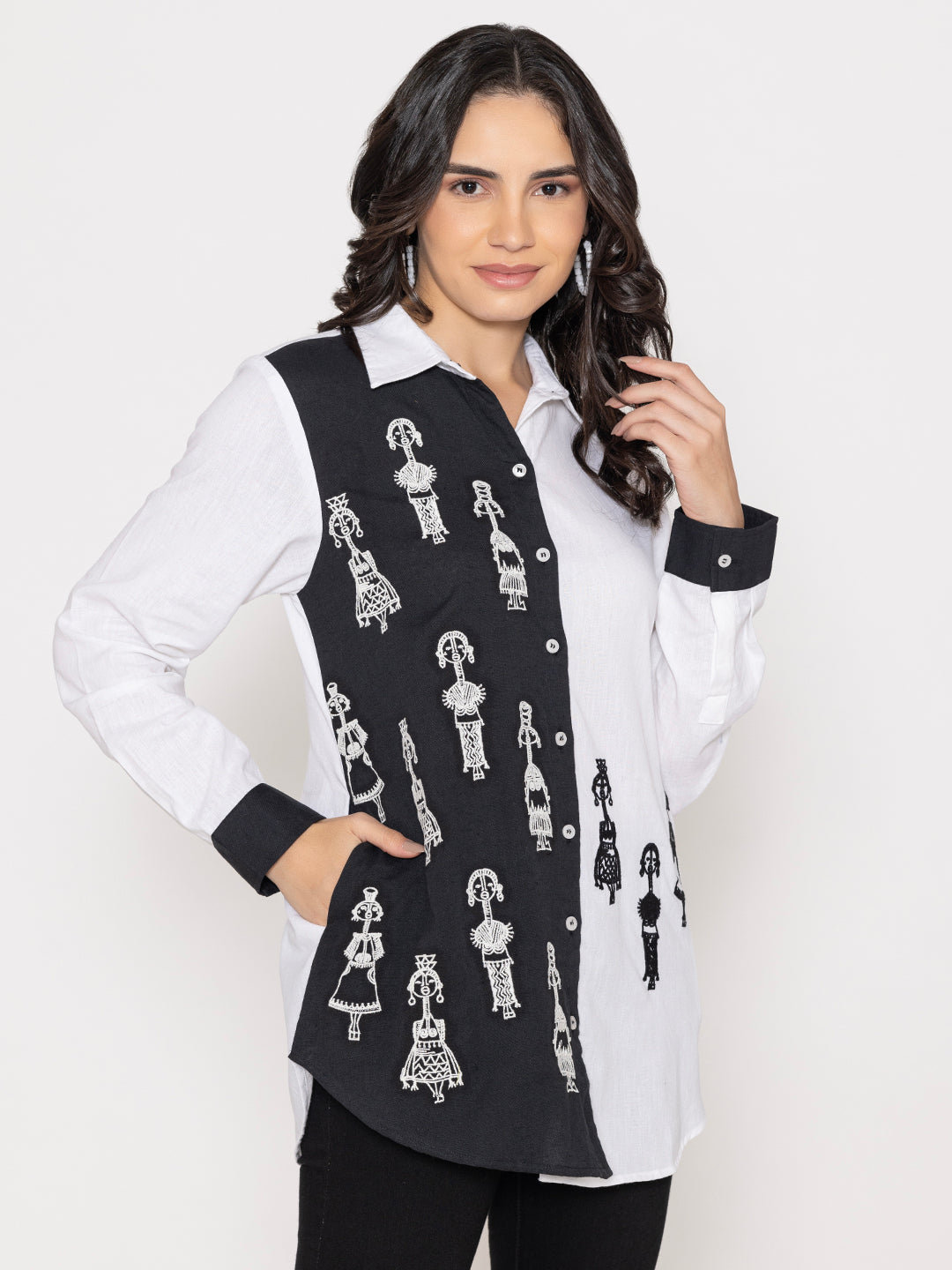 SOLID COLOR EMBROIDERED SLEEVES SHIRT ( Diwali )