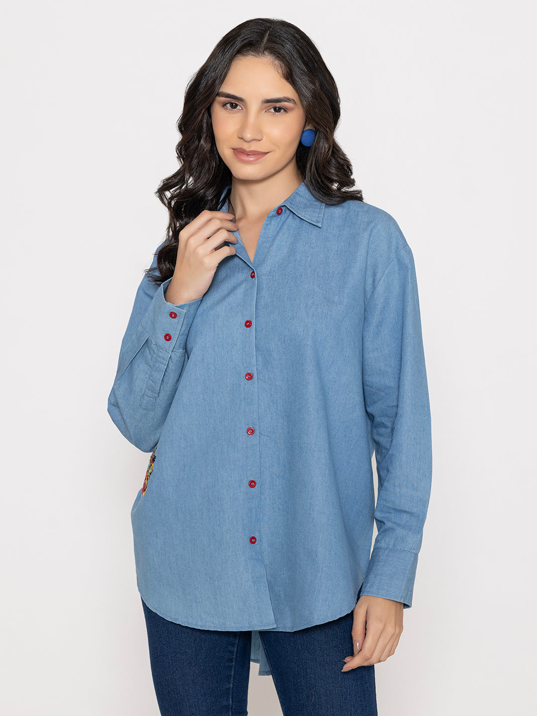 Our Women’s Premium Embroidered Blue Shirts