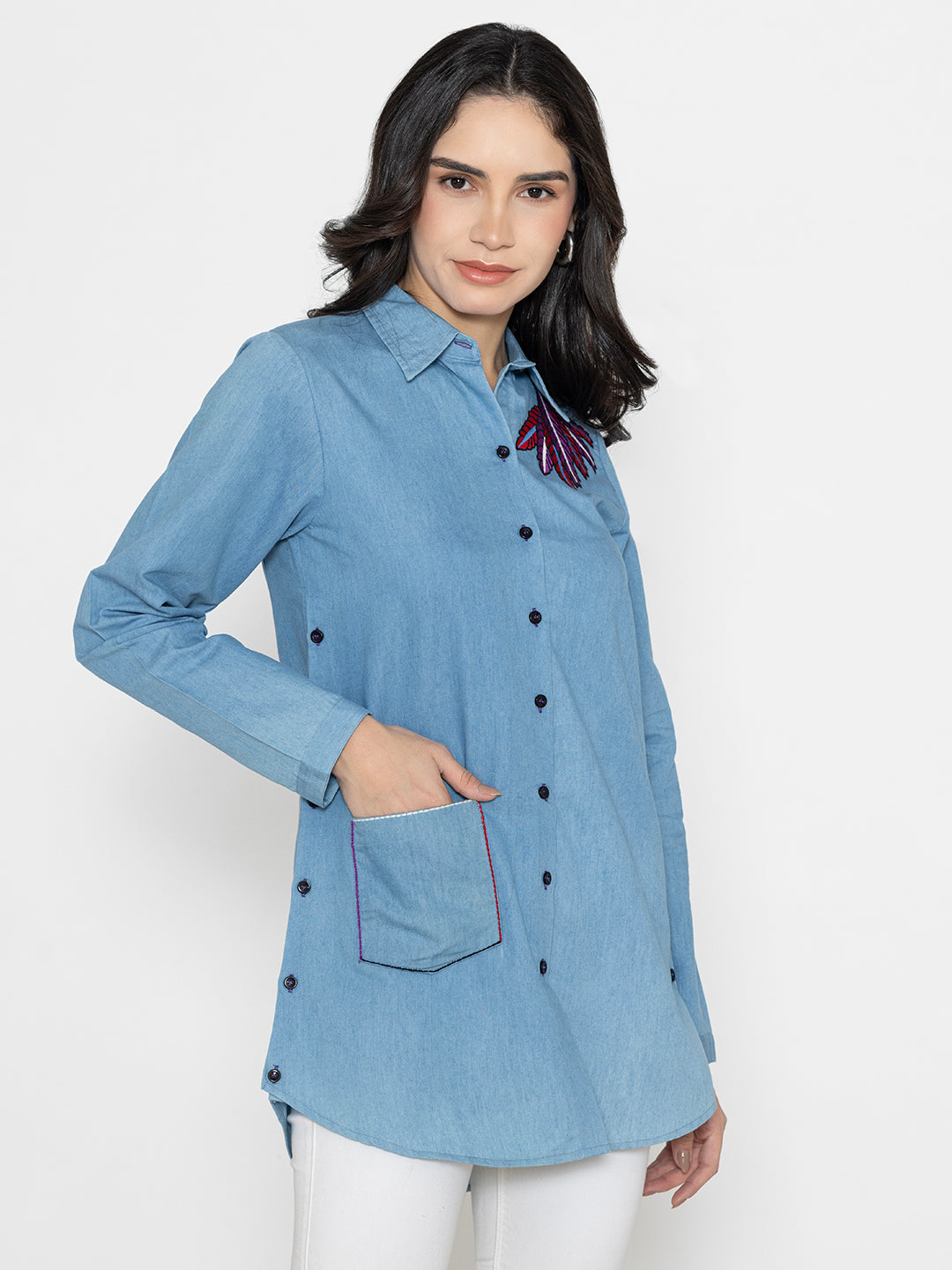Our Women’s Premium Embroidered Blue Shirts
