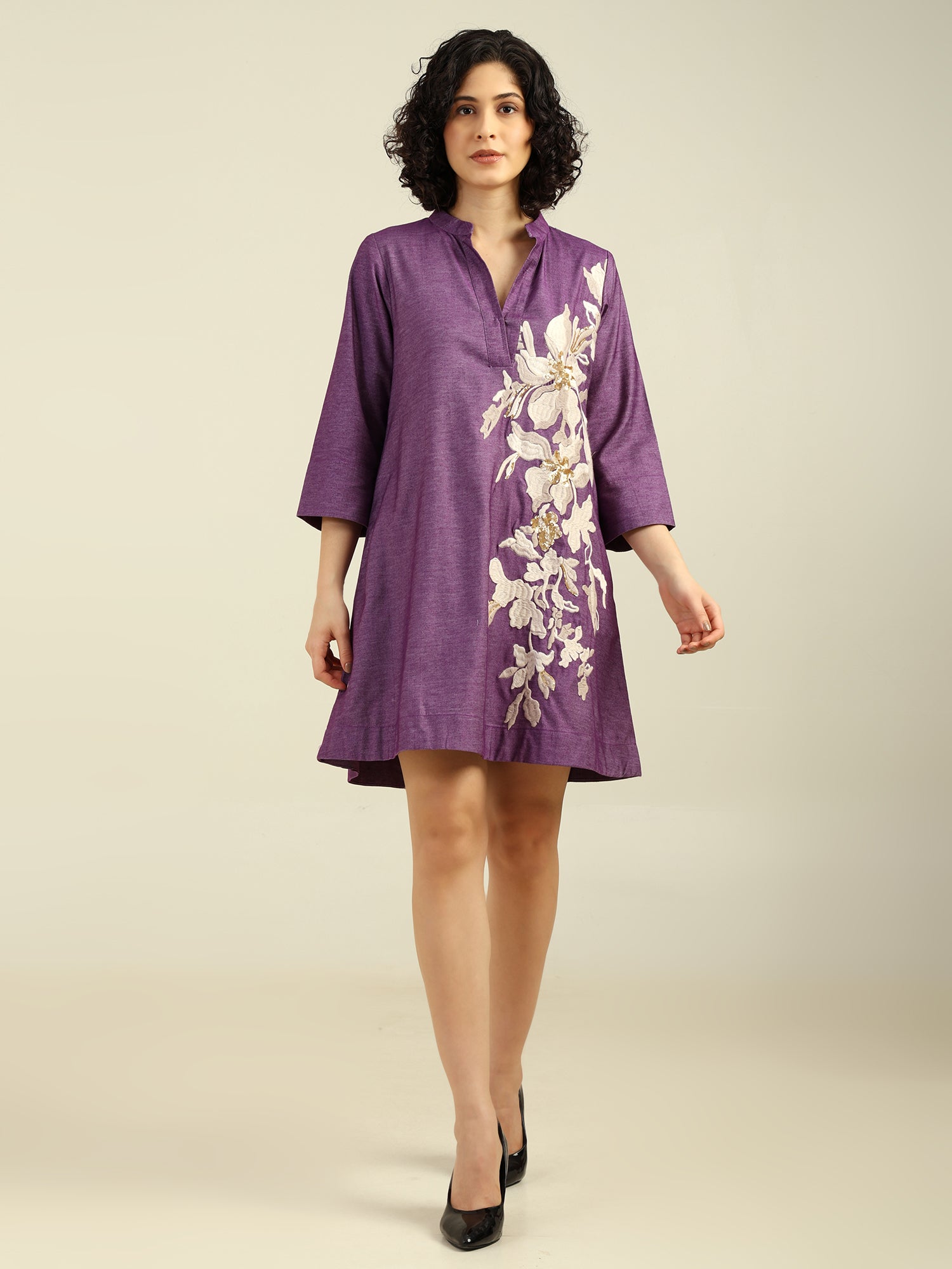 Solid Color Front Embroidered Bling Shirt Dress ( Diwali )