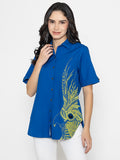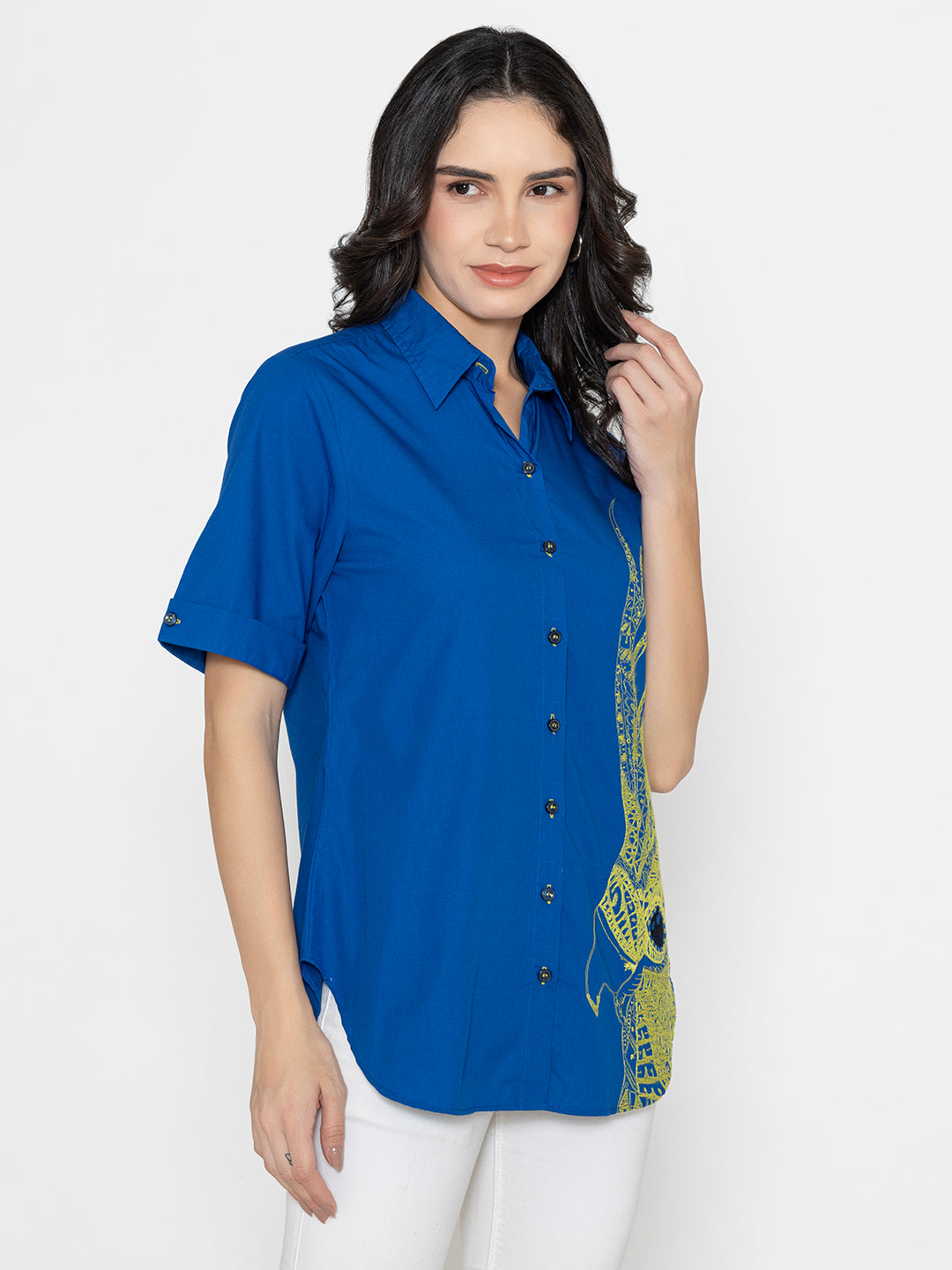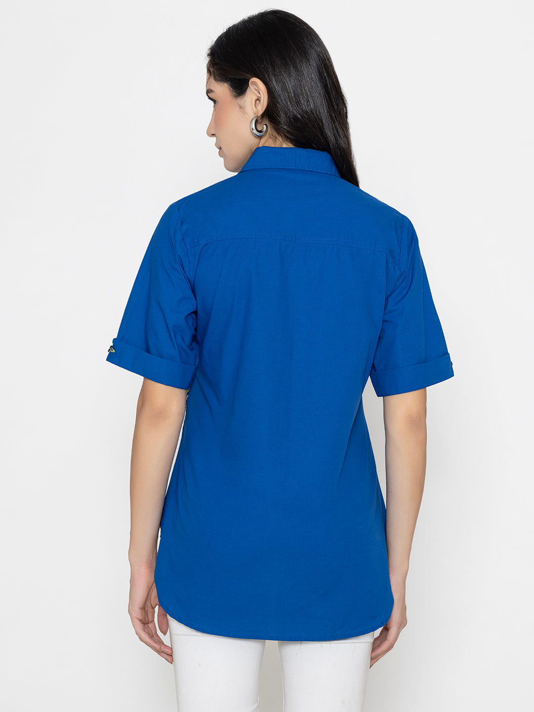 SOLID COLOR FRONT EMBROIDERED BUTTON UP EMBROIDERED SHIRT