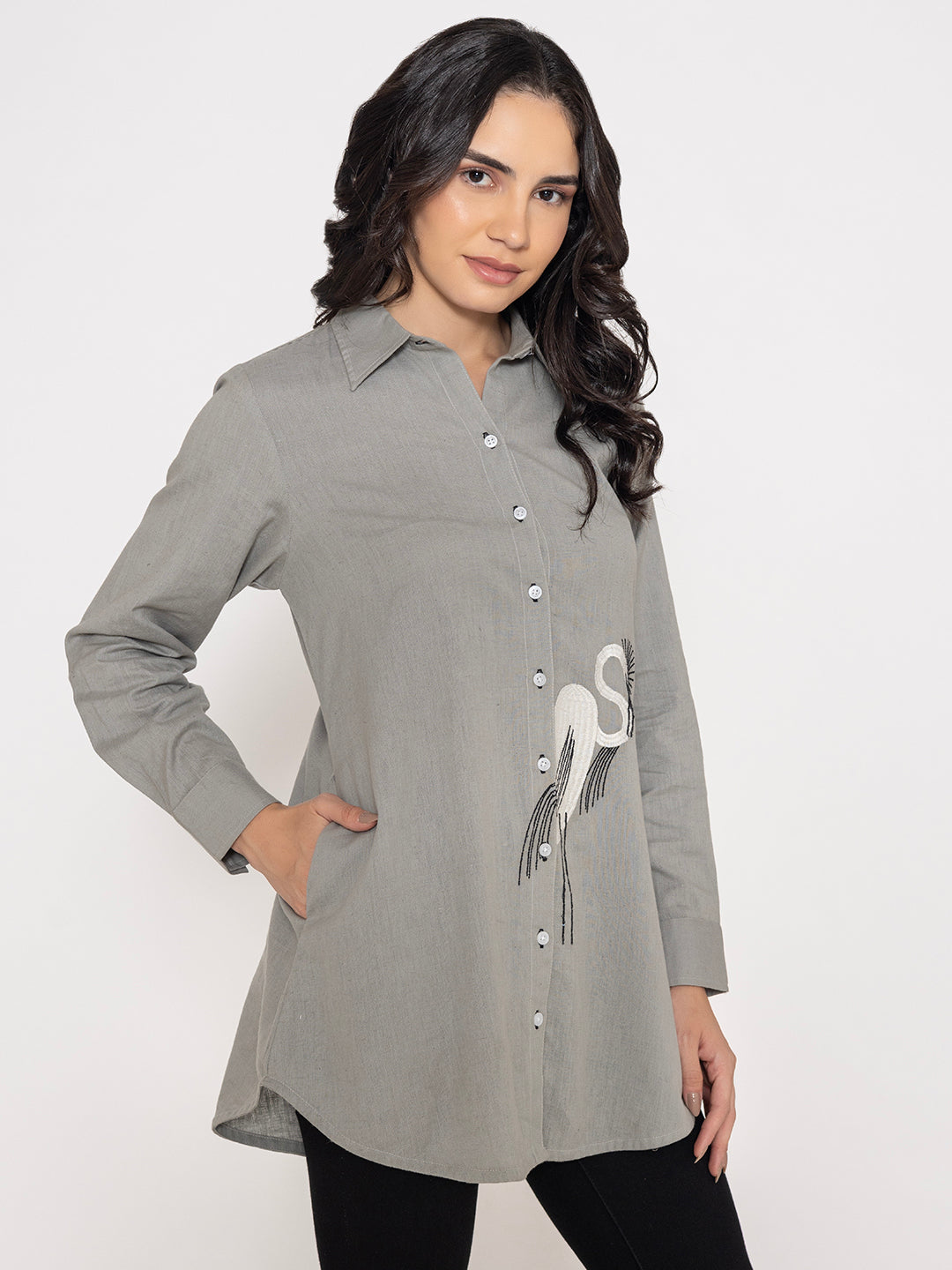 SOLID COLOR FRONT EMBROIDERED BUTTON UP EMBROIDERED SHIRT- ( Diwali )