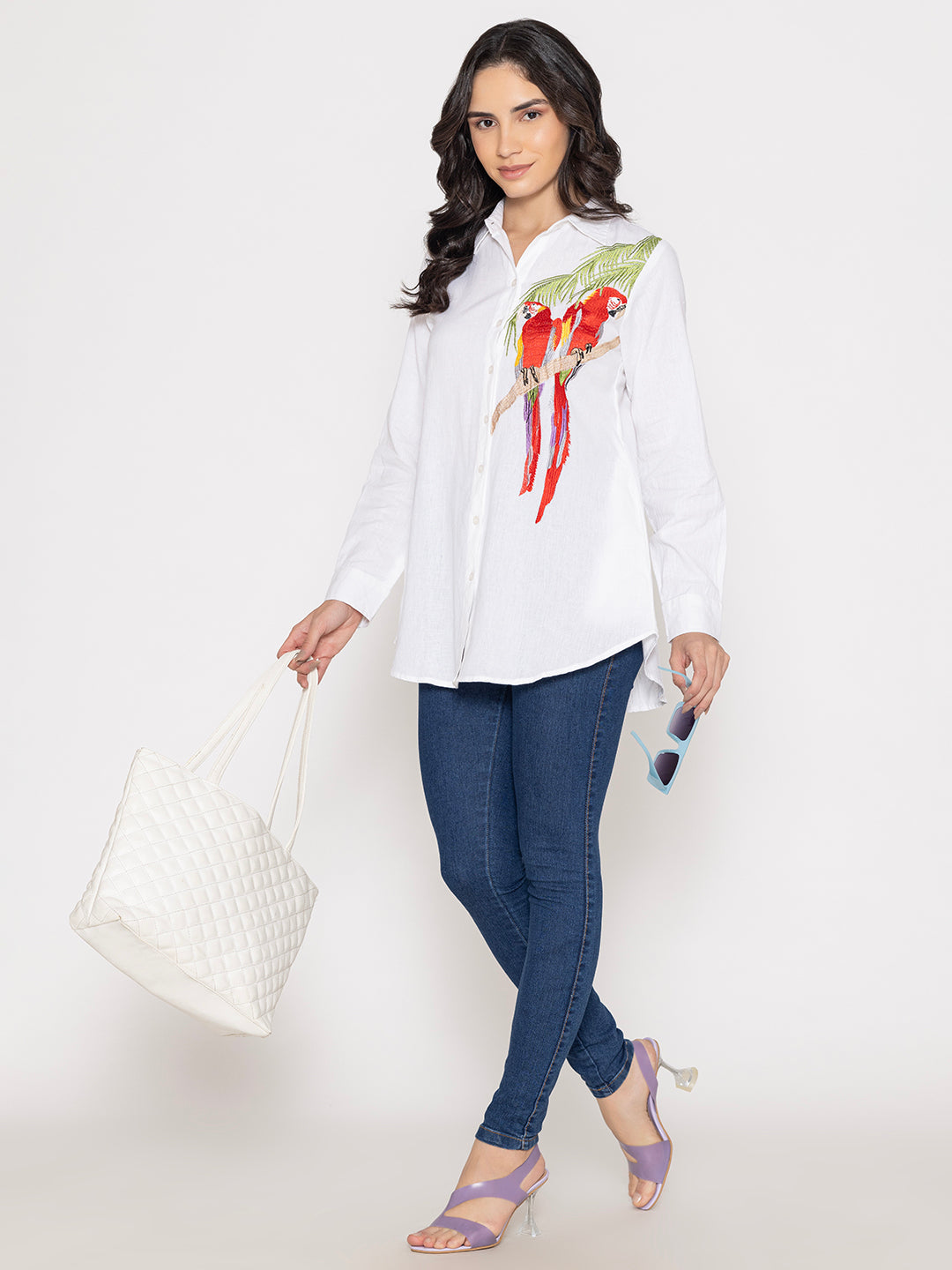 SOLID COLOR FRONT EMBROIDERED BUTTON UP EMBROIDERED SHIRT- ( Diwali )