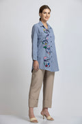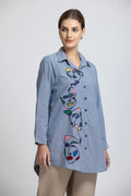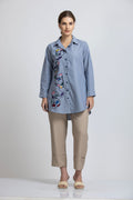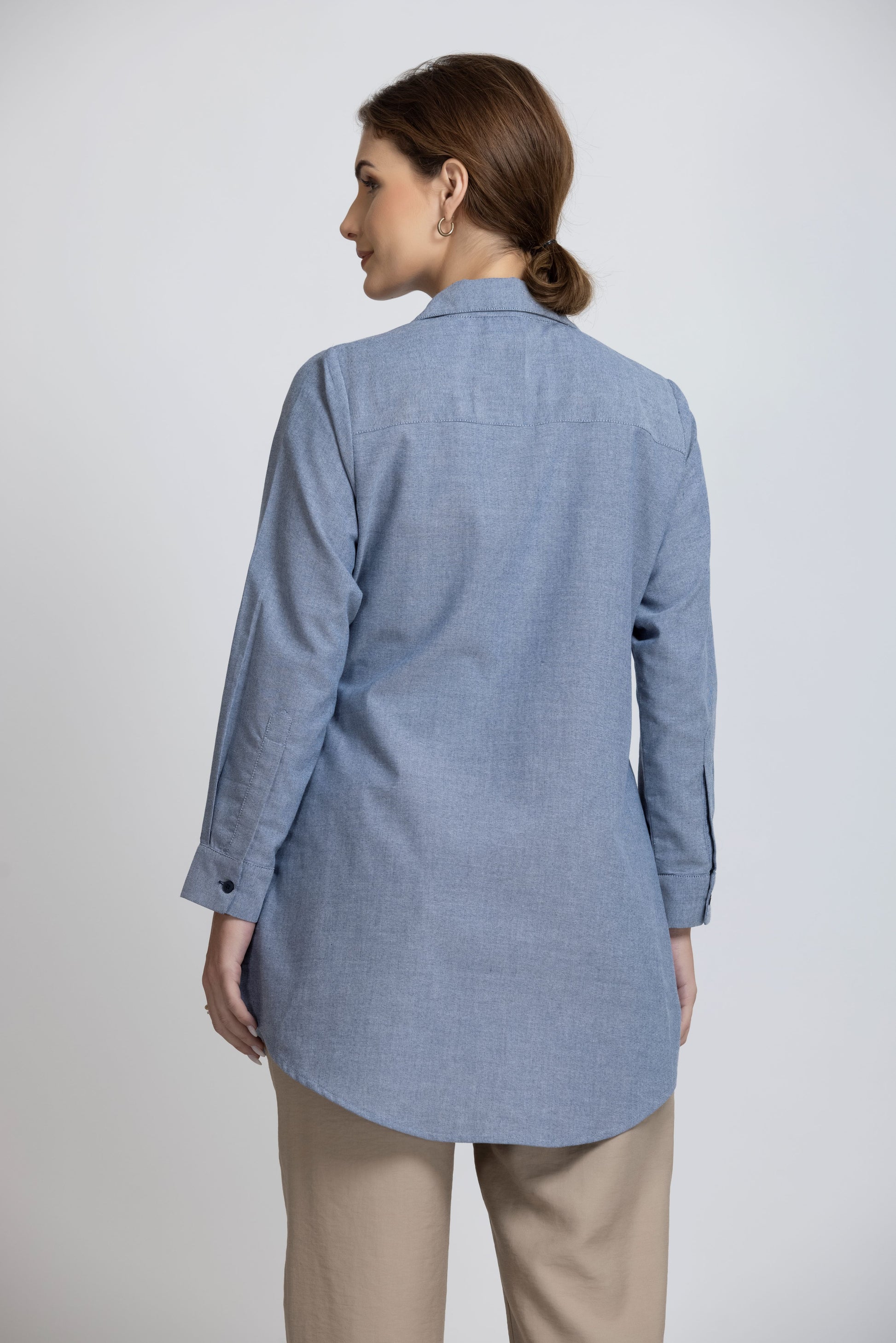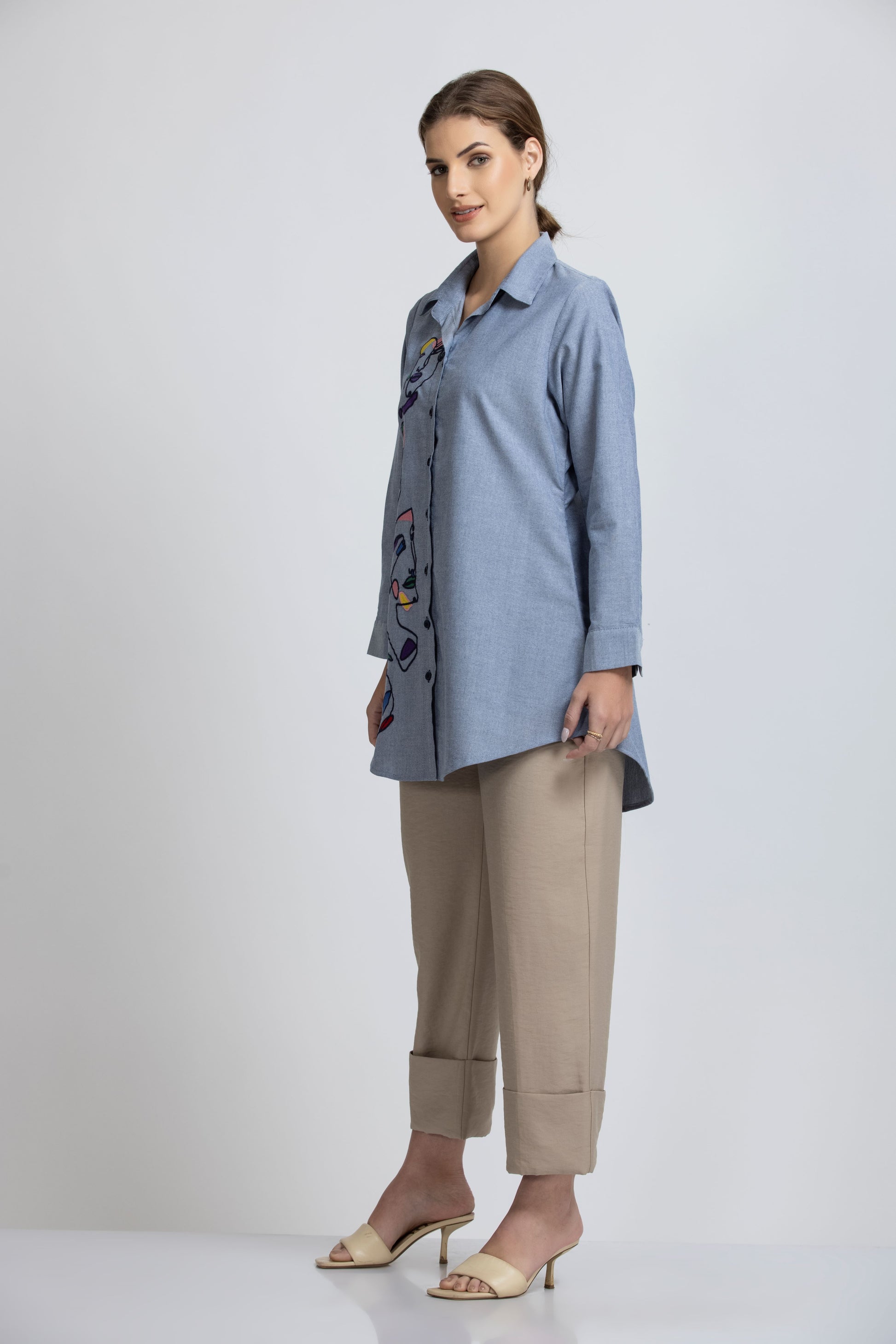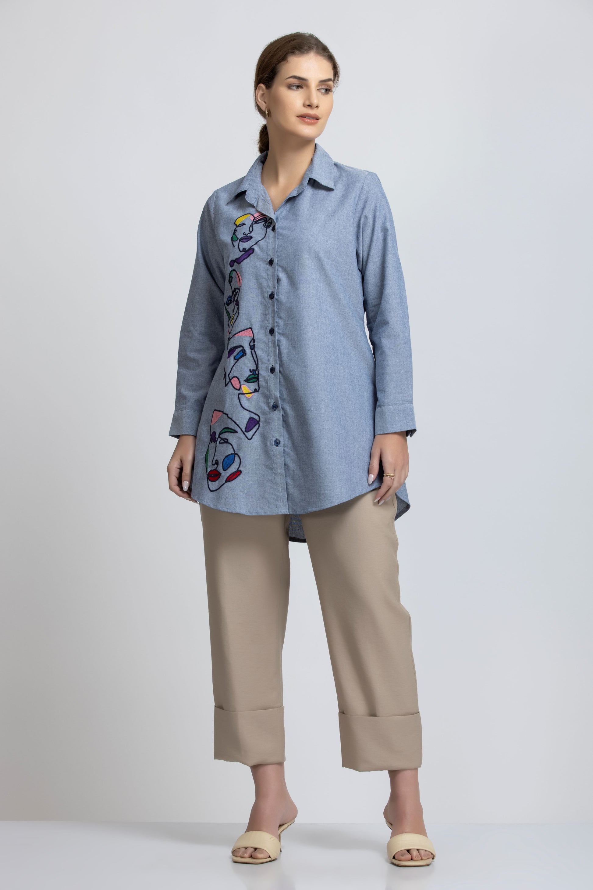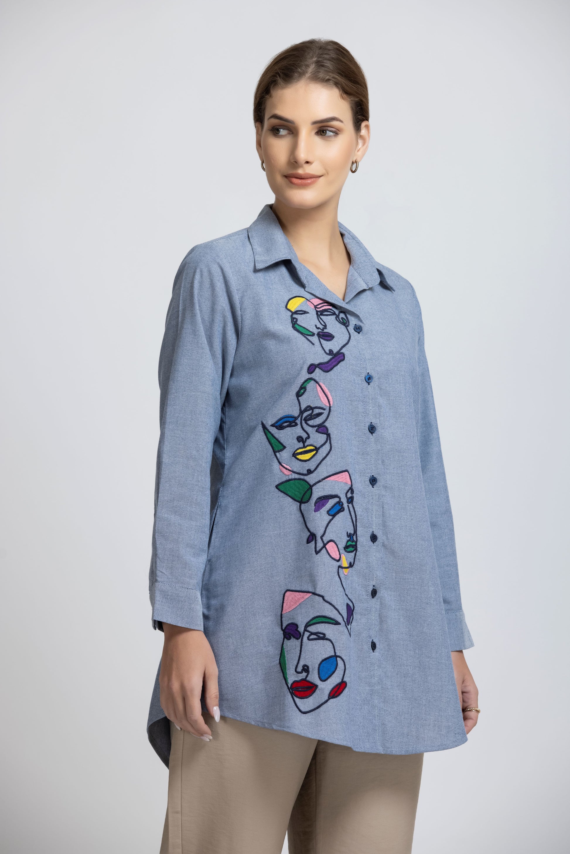 SOLID COLOR FRONT EMBROIDERED BUTTON-UP SHIRT.