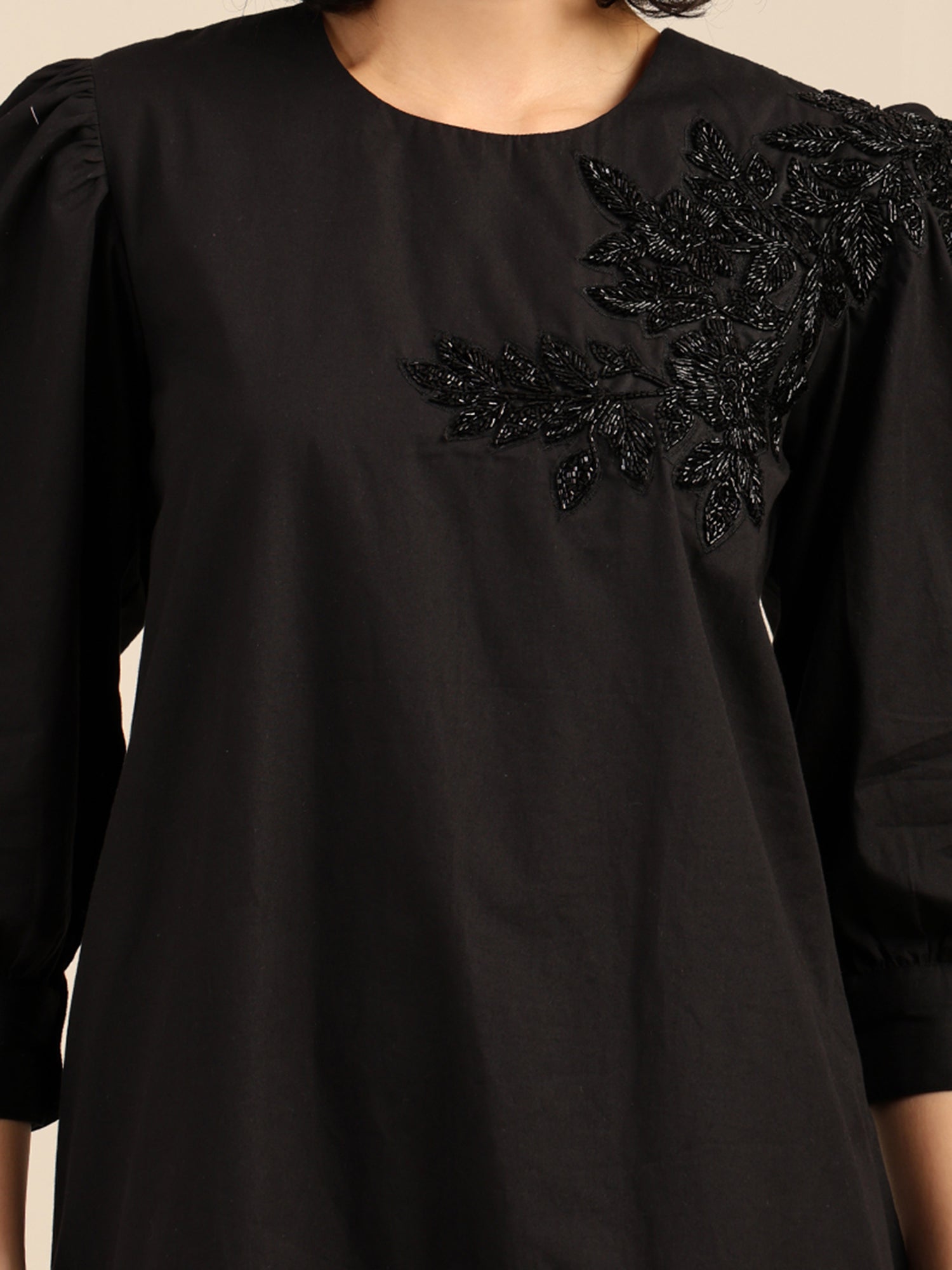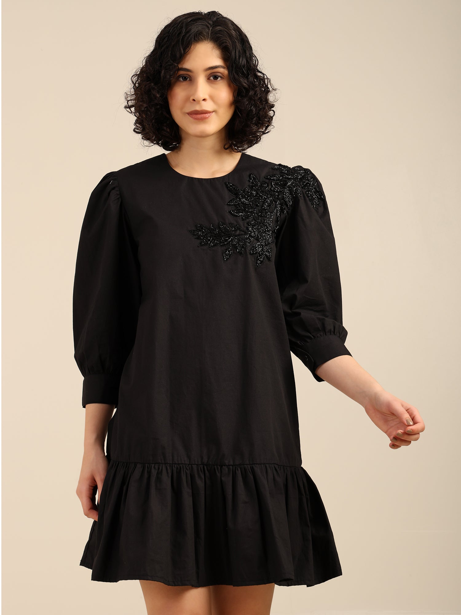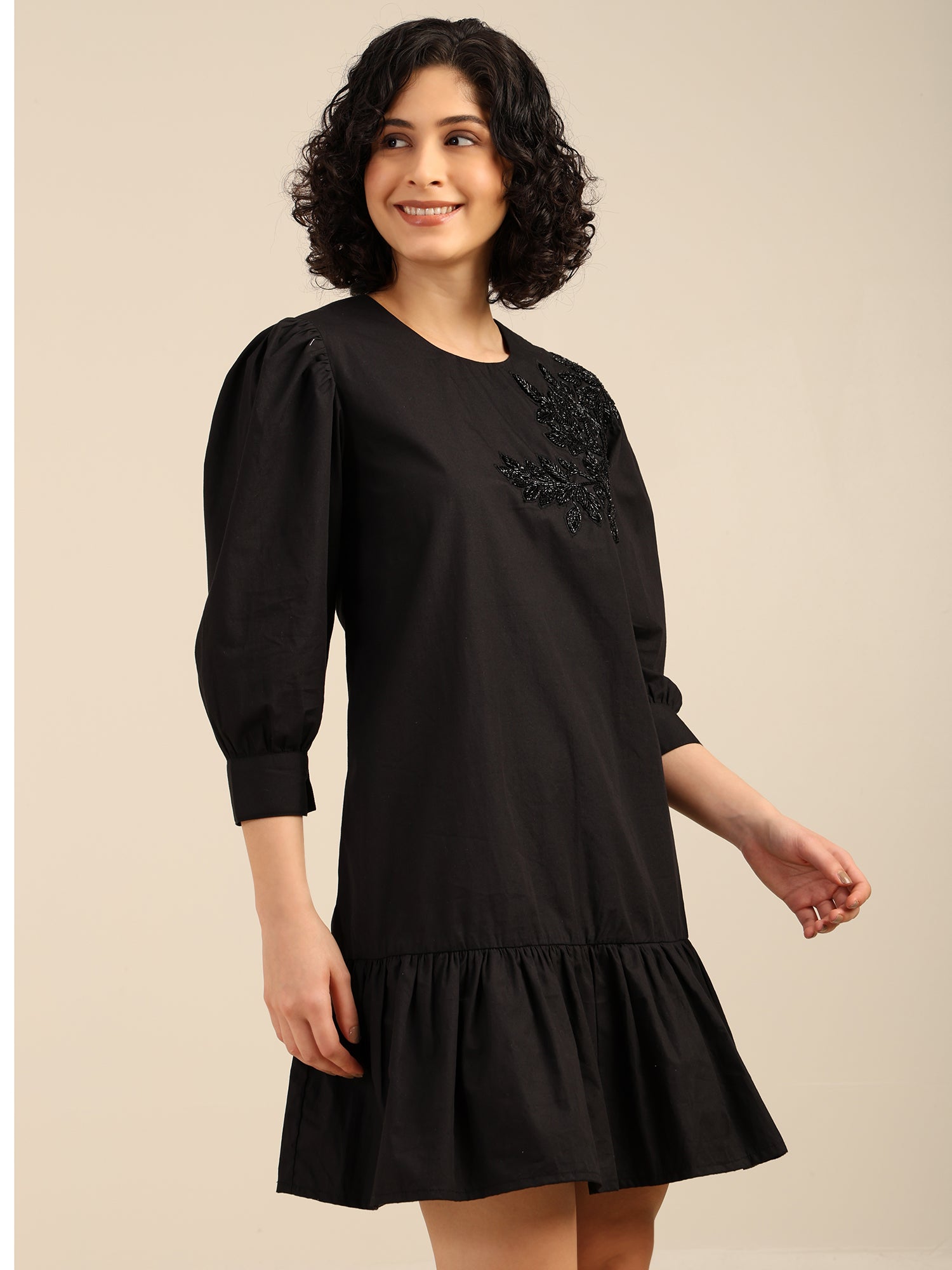 Solid Color Front Hand Embroidered Bling Ruffle Shirt Dress ( Diwali )