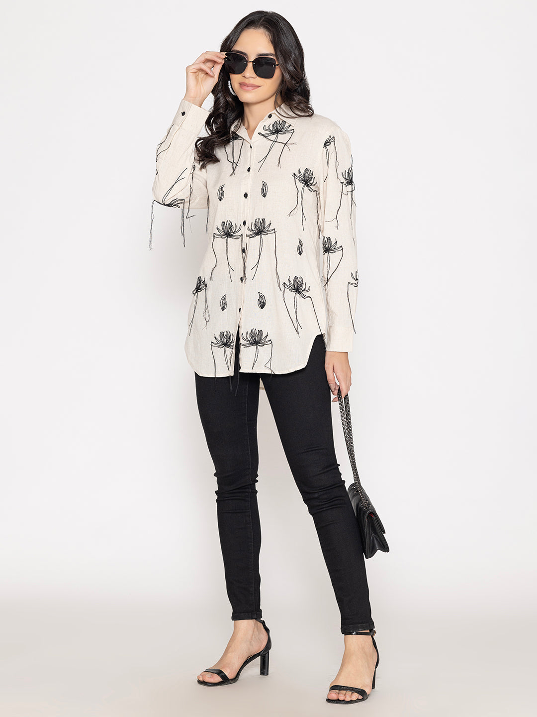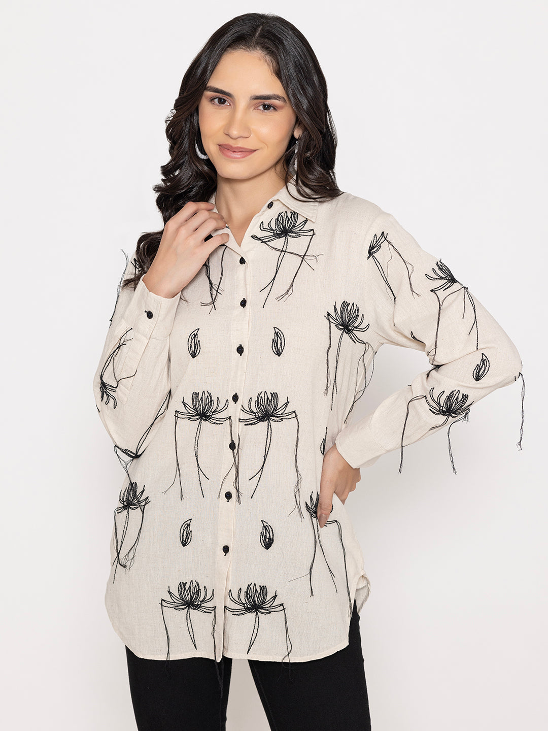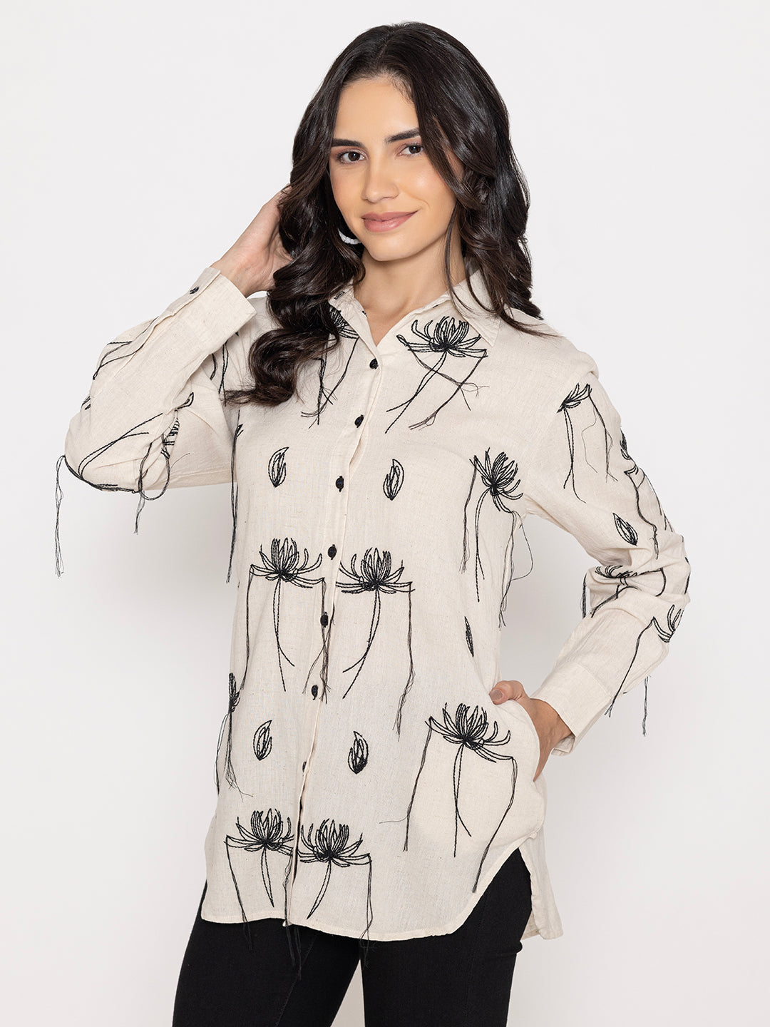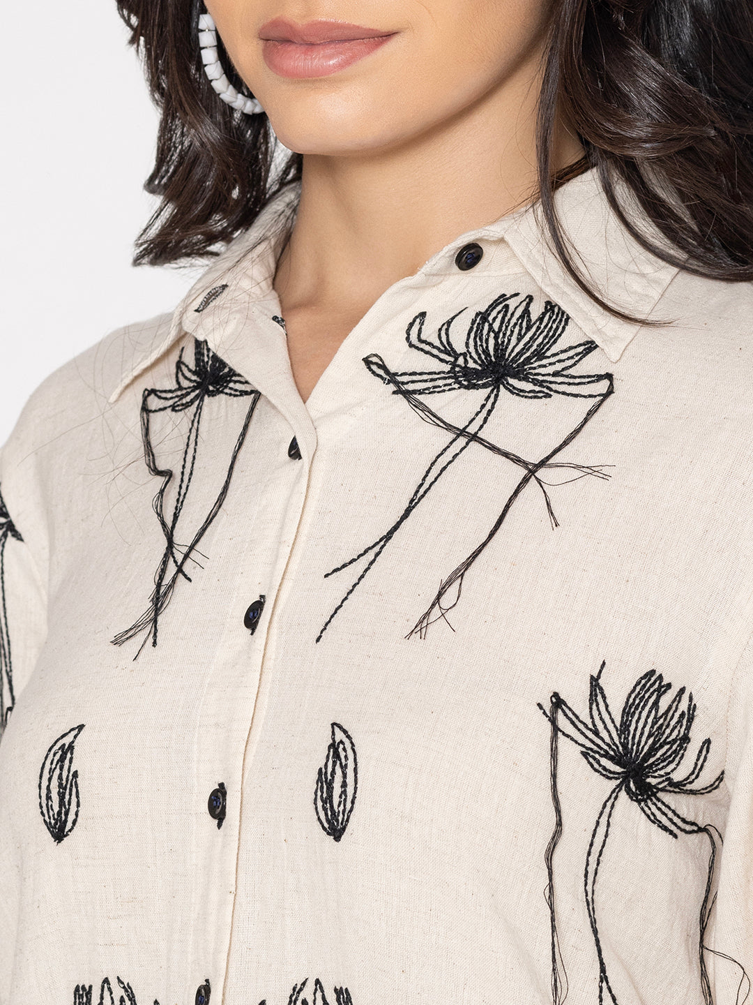 SOLID COLOR FRONTBACK AND SLEEVES BUTTON UP EMBROIDERED SHIRT ( Diwali )