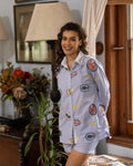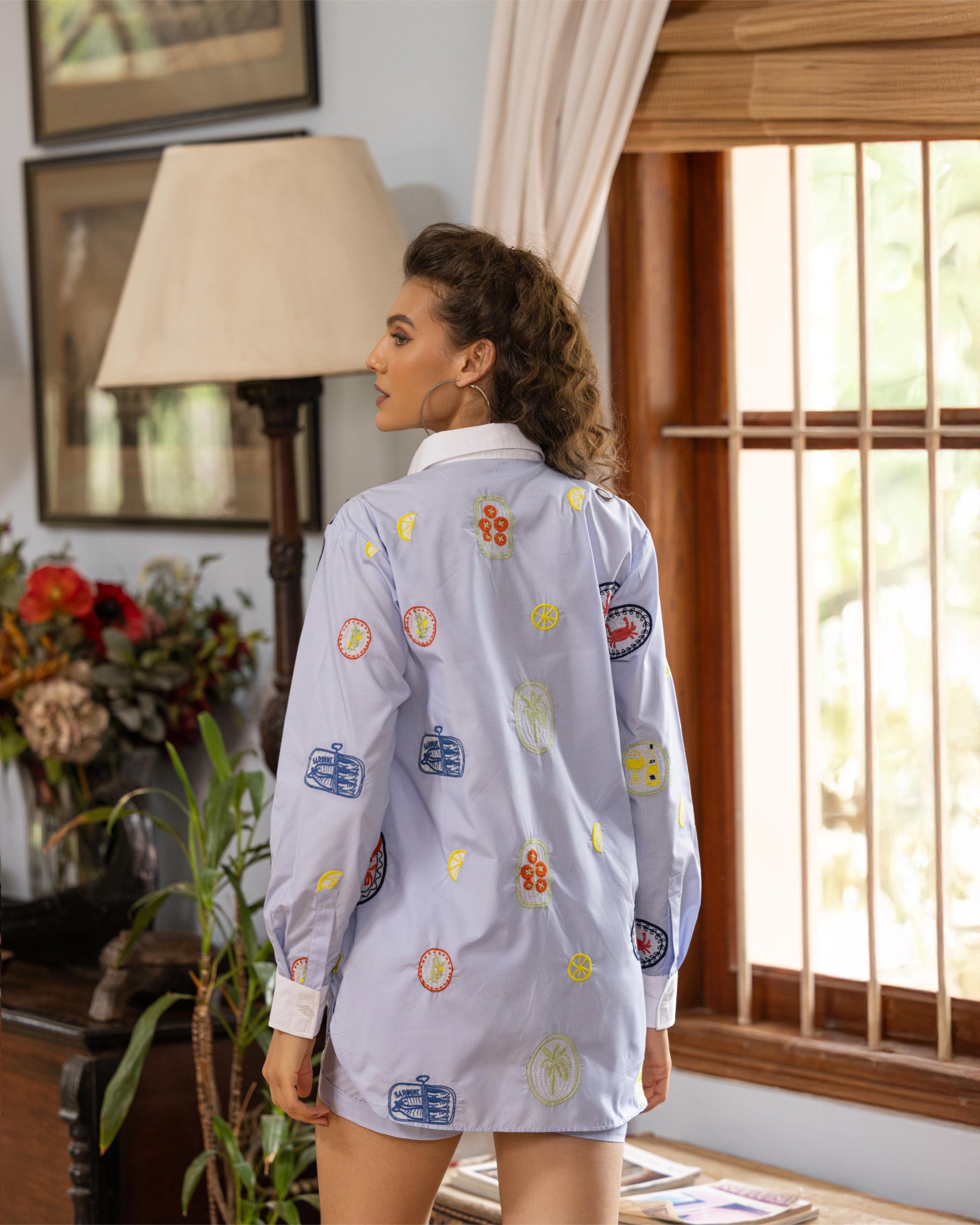 Vertical Blue Striped Embroidered Shirt with Contrast Finishing ( Diwali )