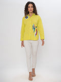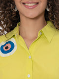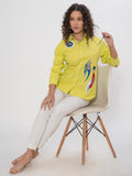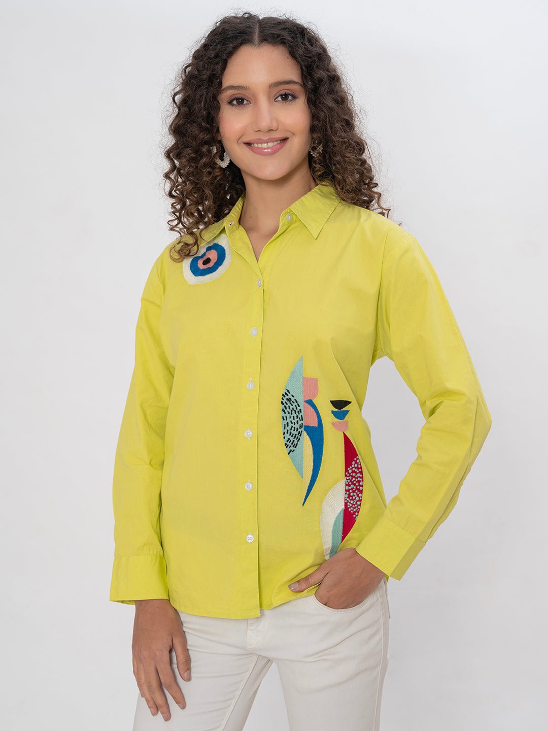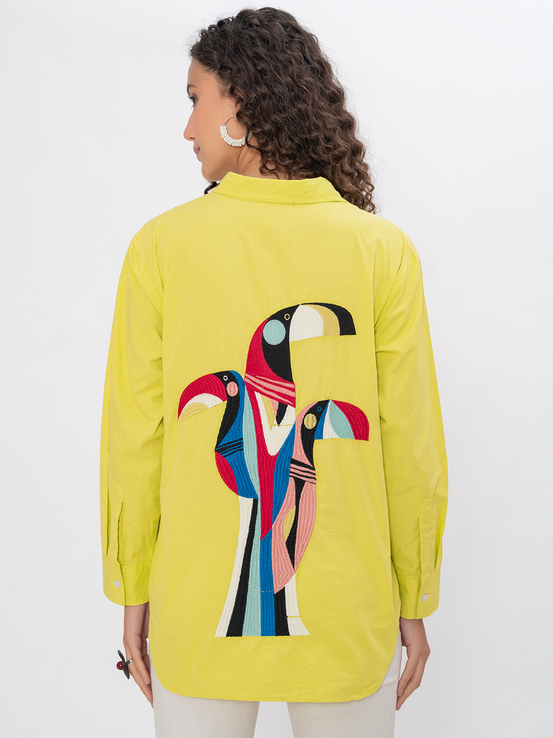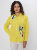 VIBRANT YELLOW SOLID COLOR FRONT AND BACK EMBROIDERED COTTON SHIRT. ( Diwali )