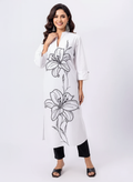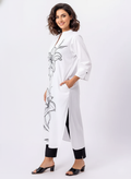 WHITE FRONT EMBROIDERED COTTON DRESS