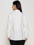White Macaw Embroidered Cotton Shirt with Hanging Sequins