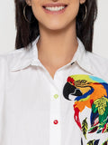 White Macaw Embroidered Shirt – A Splash of Elegance