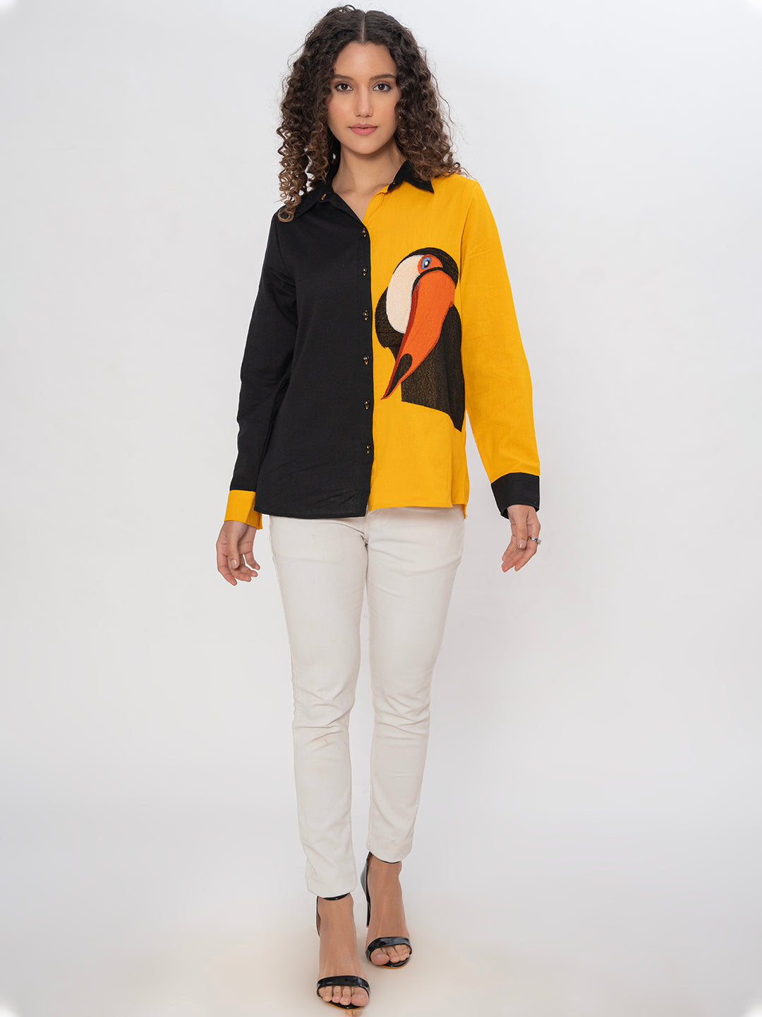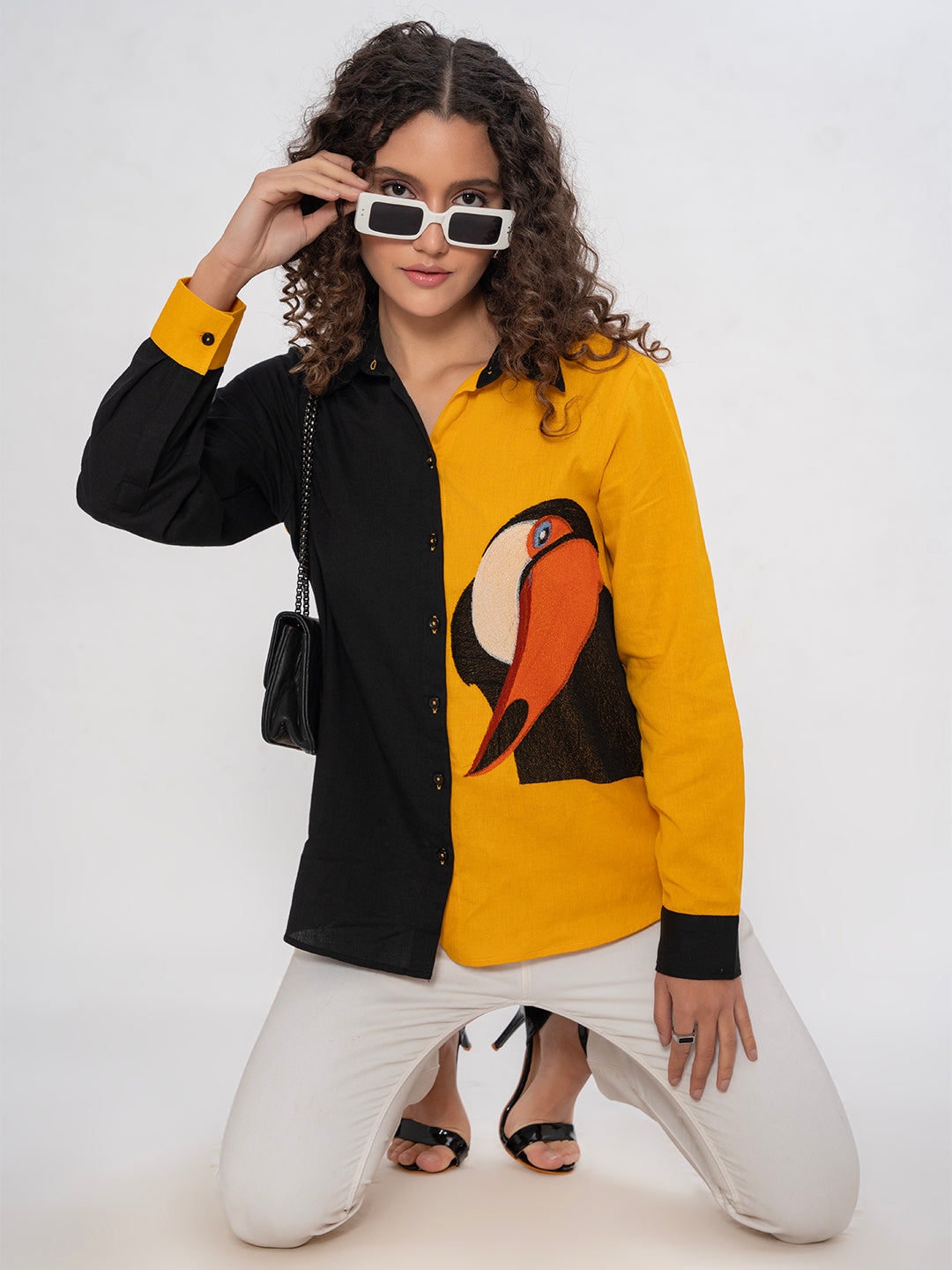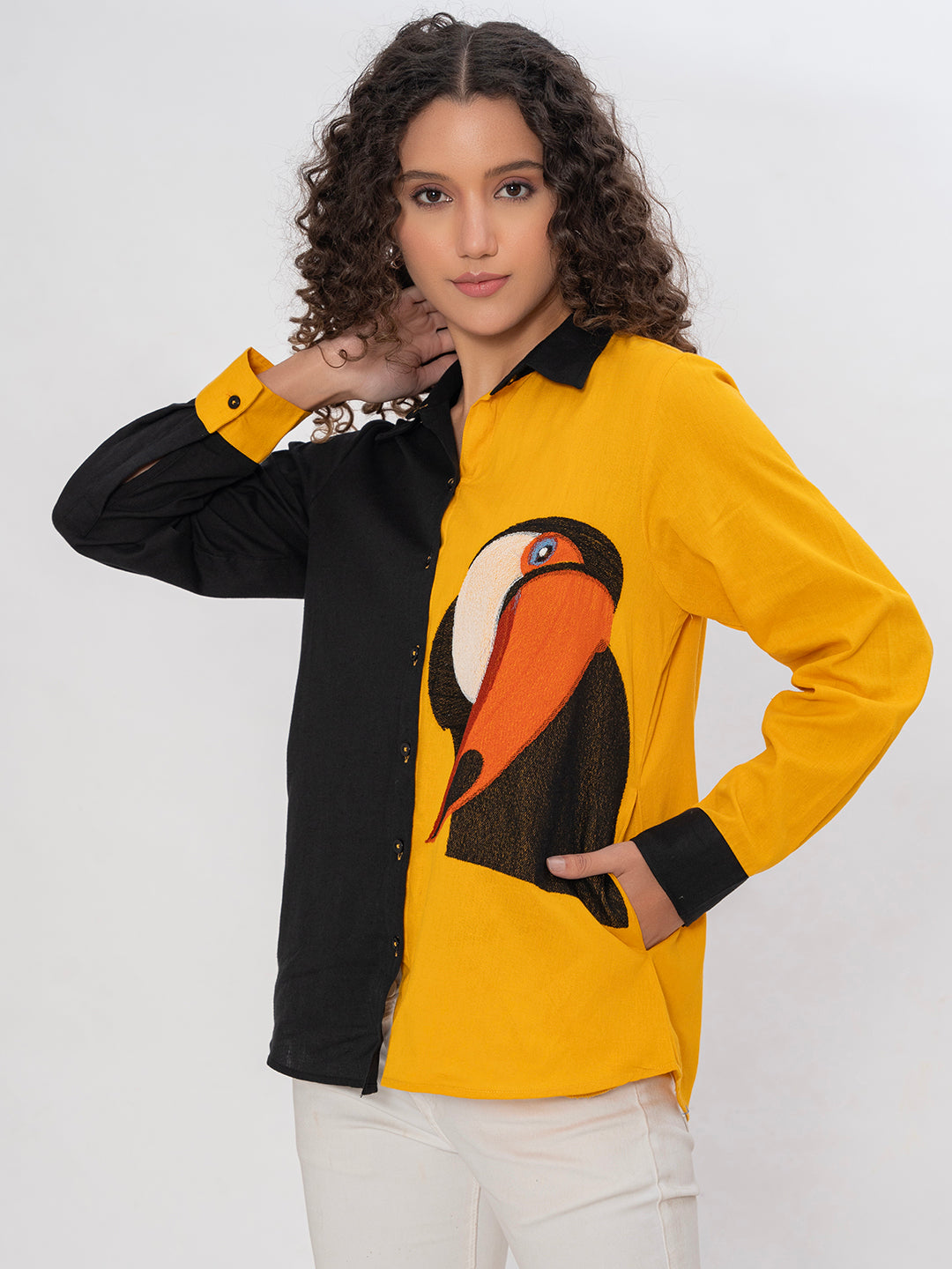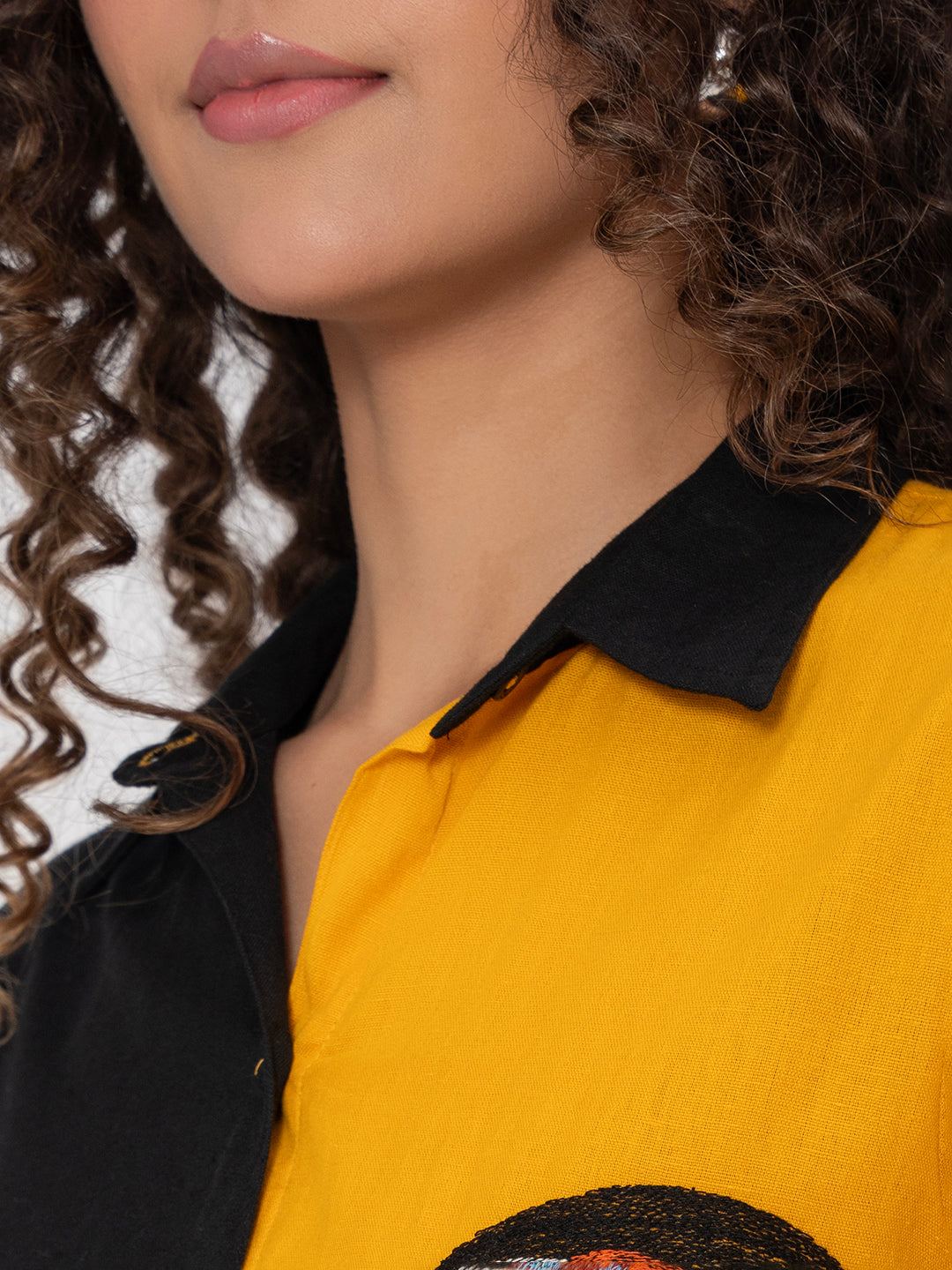 YELLOW FRONT AND BACK EMBROIDERED COTTON SHIRT ( Diwali )
